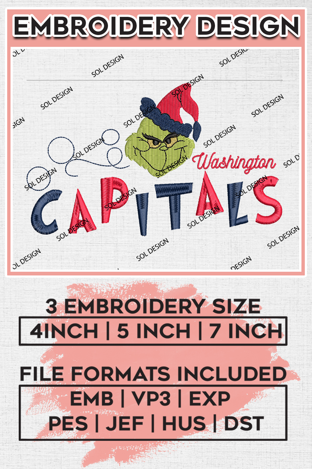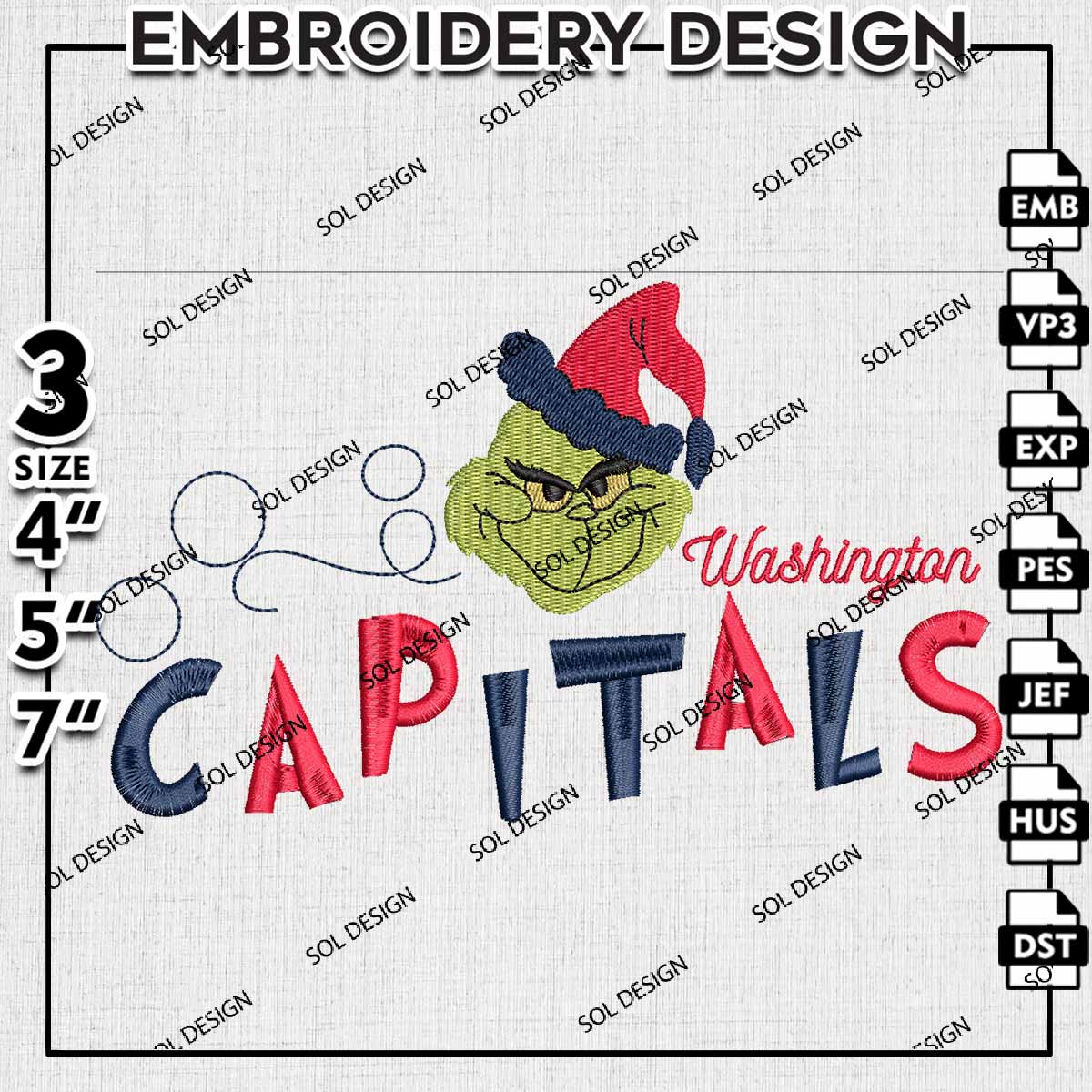 Christmas Grinch x Washington Capitals NHL Team Embroidery Designs, Grinch Embroidery Files, NHL Capitals Hockey Team Logo Embroidery, Merry Christmas Machine Embroidery Design, Digital Download
