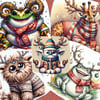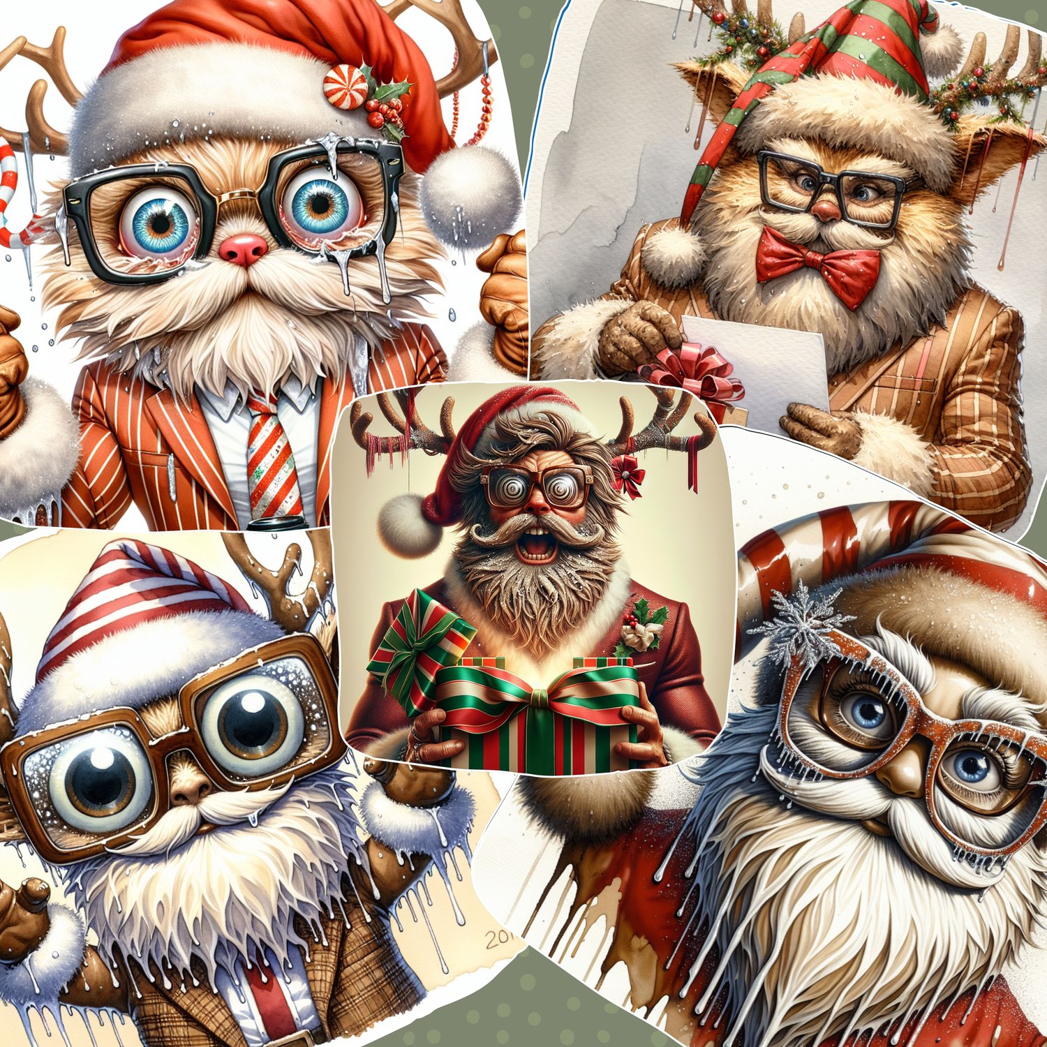 Unleash a world of hilarious chaos and festive creativity with the Crazy Wacky Character Generator Mixer! This digital product is packed with wildly imaginative characters—from candy-striped fashion divas to fuzzy holiday creatures, funky llamas, eccentric Santas, galaxy-spotted cows, gleeful frogs, and more. Each design bursts with personality, featuring oversized glasses, quirky accessories, bold color palettes, and expressive poses that make every character unforgettable.