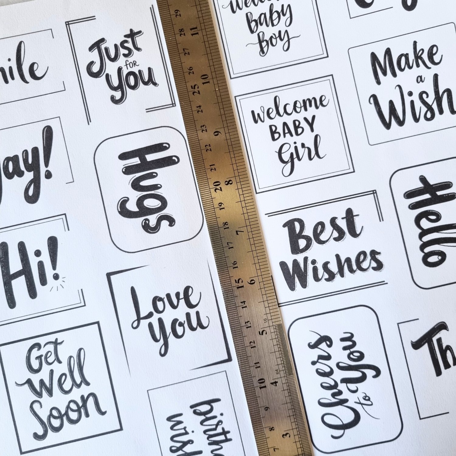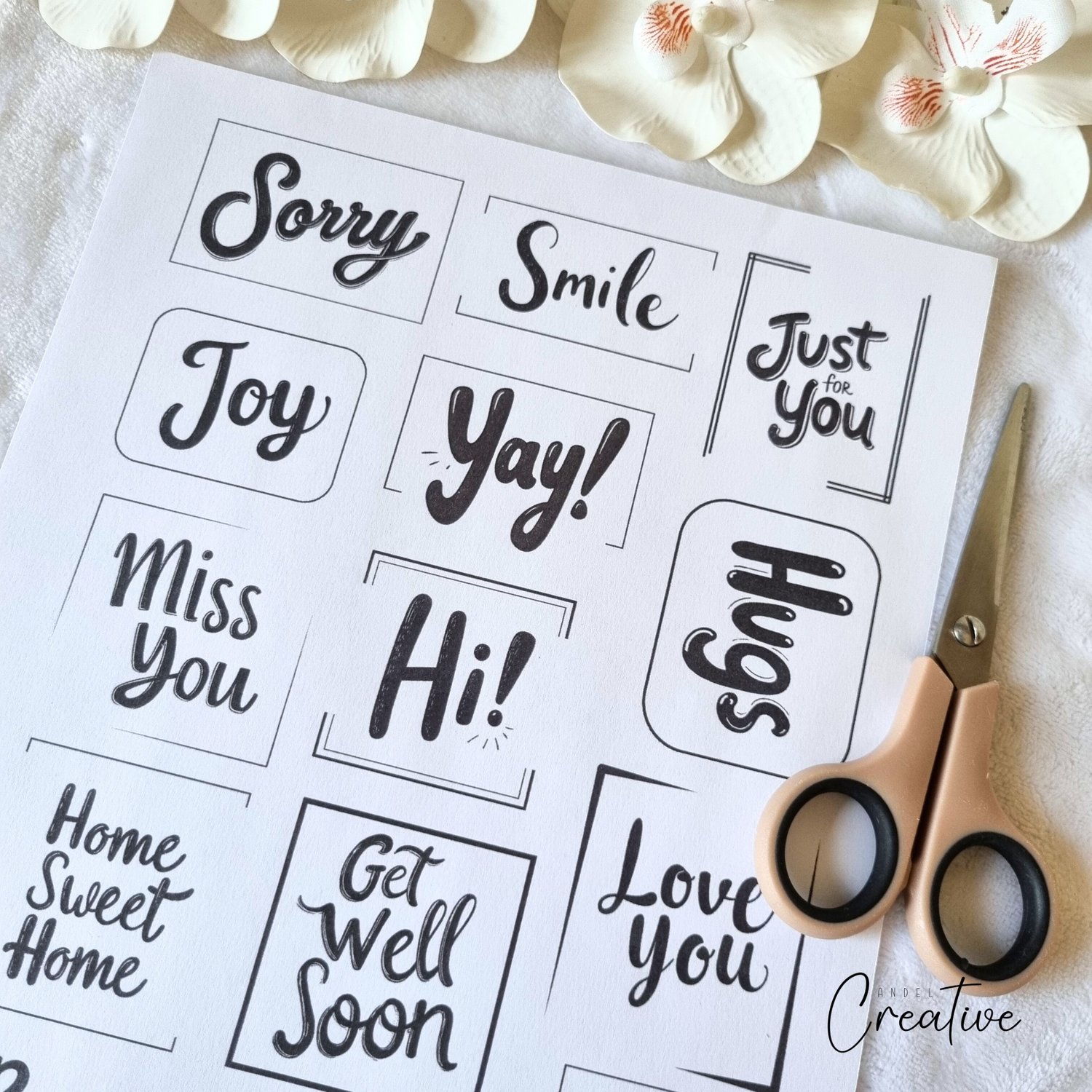 Featuring a cute bubble-style font and phrases for all occasions, they’re perfect for card making, scrapbooking, and decorating your junk journal.