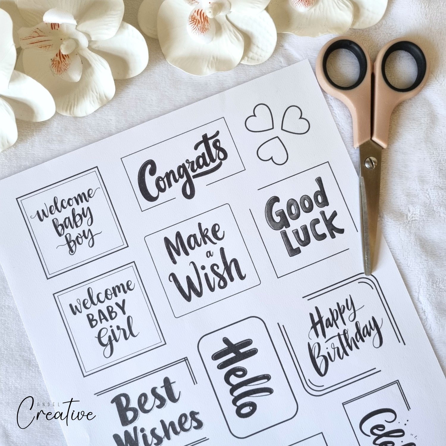 If you love crafting greeting cards but don’t have stamps, a Sizzix, or a Cricut to add fun messages, these printable sentiment embellishments are just what you need.
