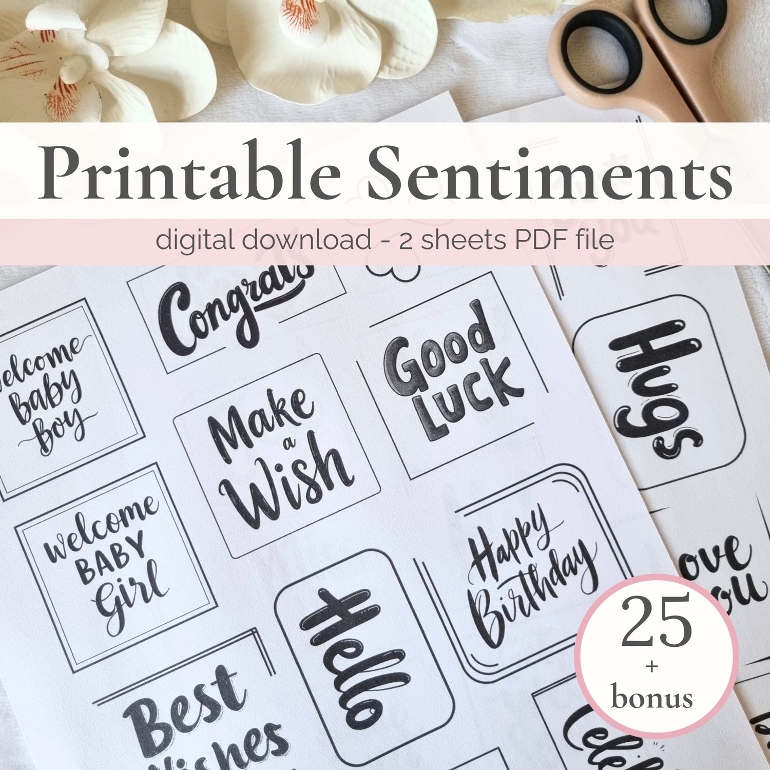 - Ready-to-print PDF file with 25 sentiments for cards and crafts (size on product photo)