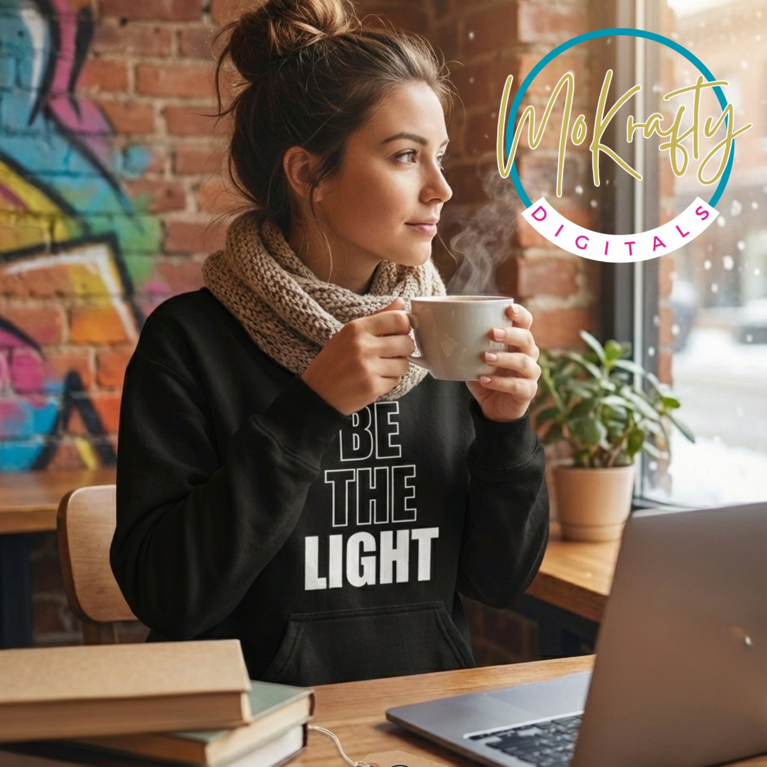 Shine your faith boldly with this Be The Light PNG Bundle. Featuring a clean, statement-style design, this bundle includes one black PNG and one white PNG, perfect for shirts, hoodies, and inspirational apparel. Designed for easy printing with no layers, this file works beautifully for sublimation, DTF, and small business use.
