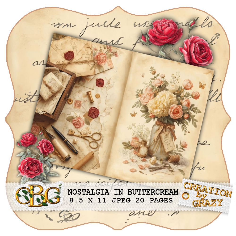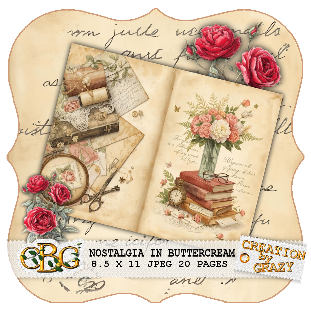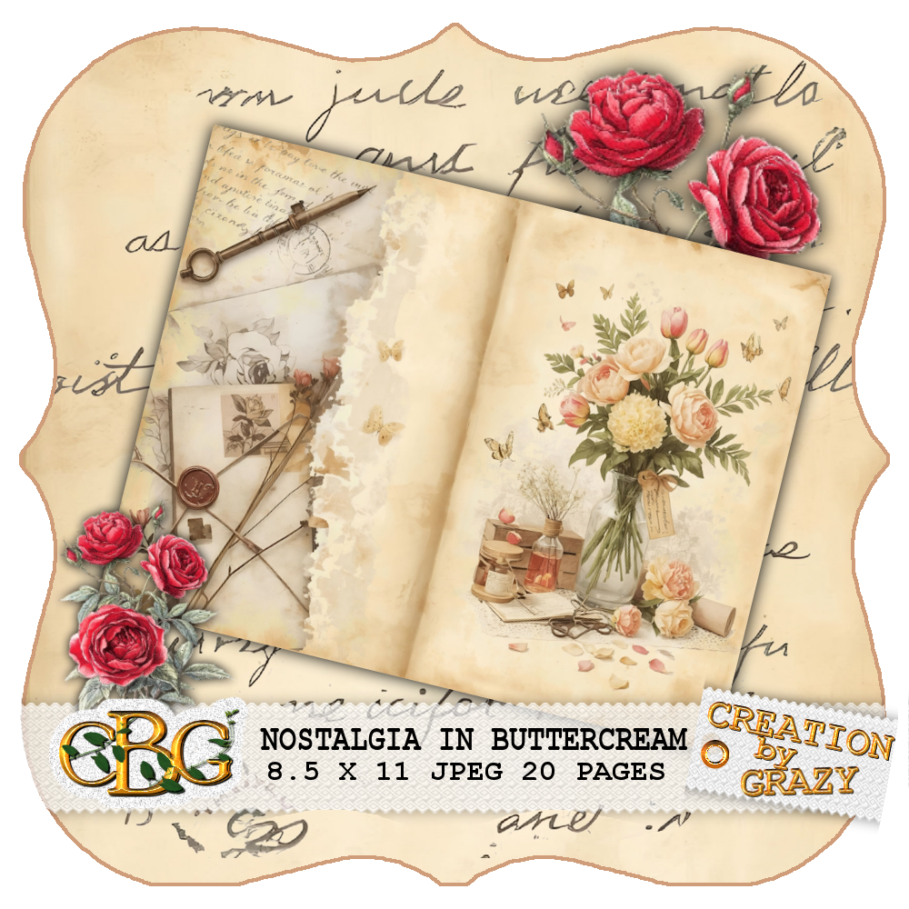 Nostalgia in Buttercream – Shabby Chic Junk Journal Kit Printable Paper Pages