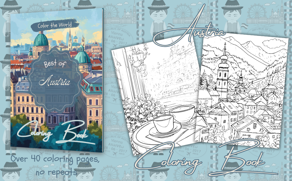 Discover the beauty of Austria through the pages of this enchanting coloring book! From the majestic Alps to charming villages, grand palaces, and delicious pastries, each page brings Austria’s rich culture and stunning landscapes to life.