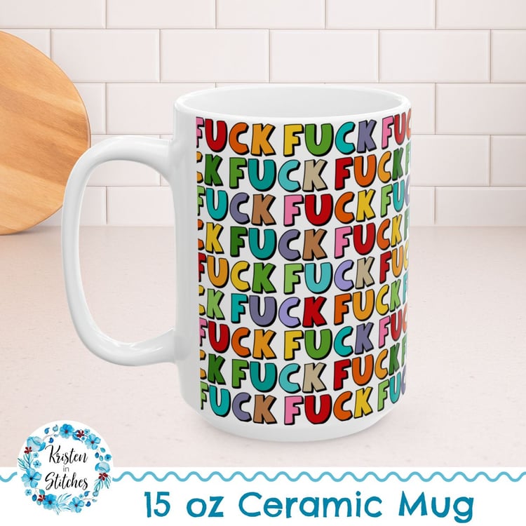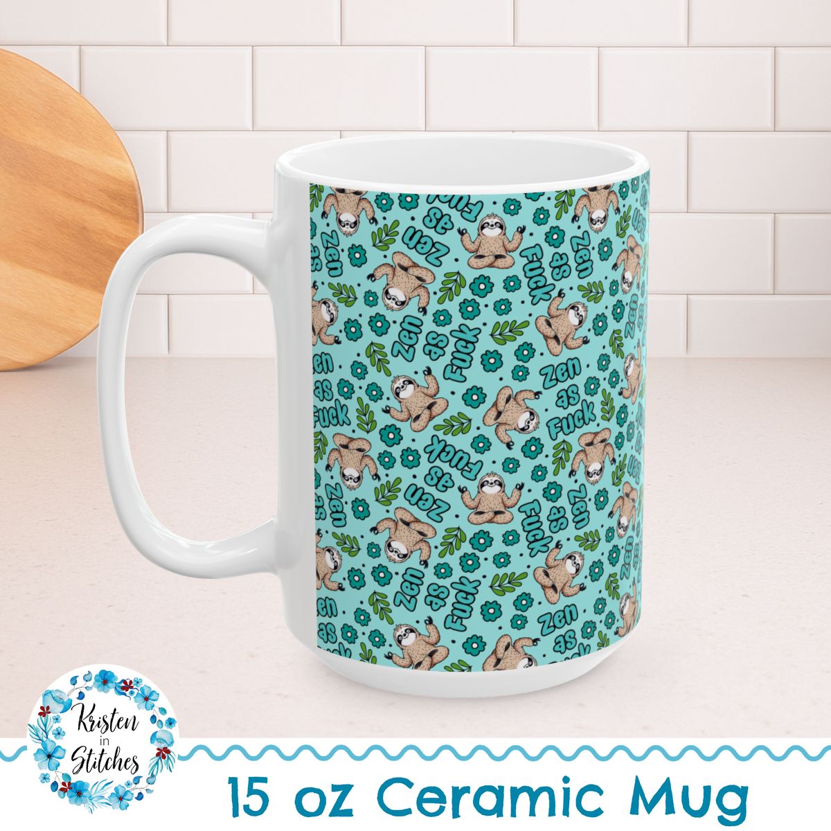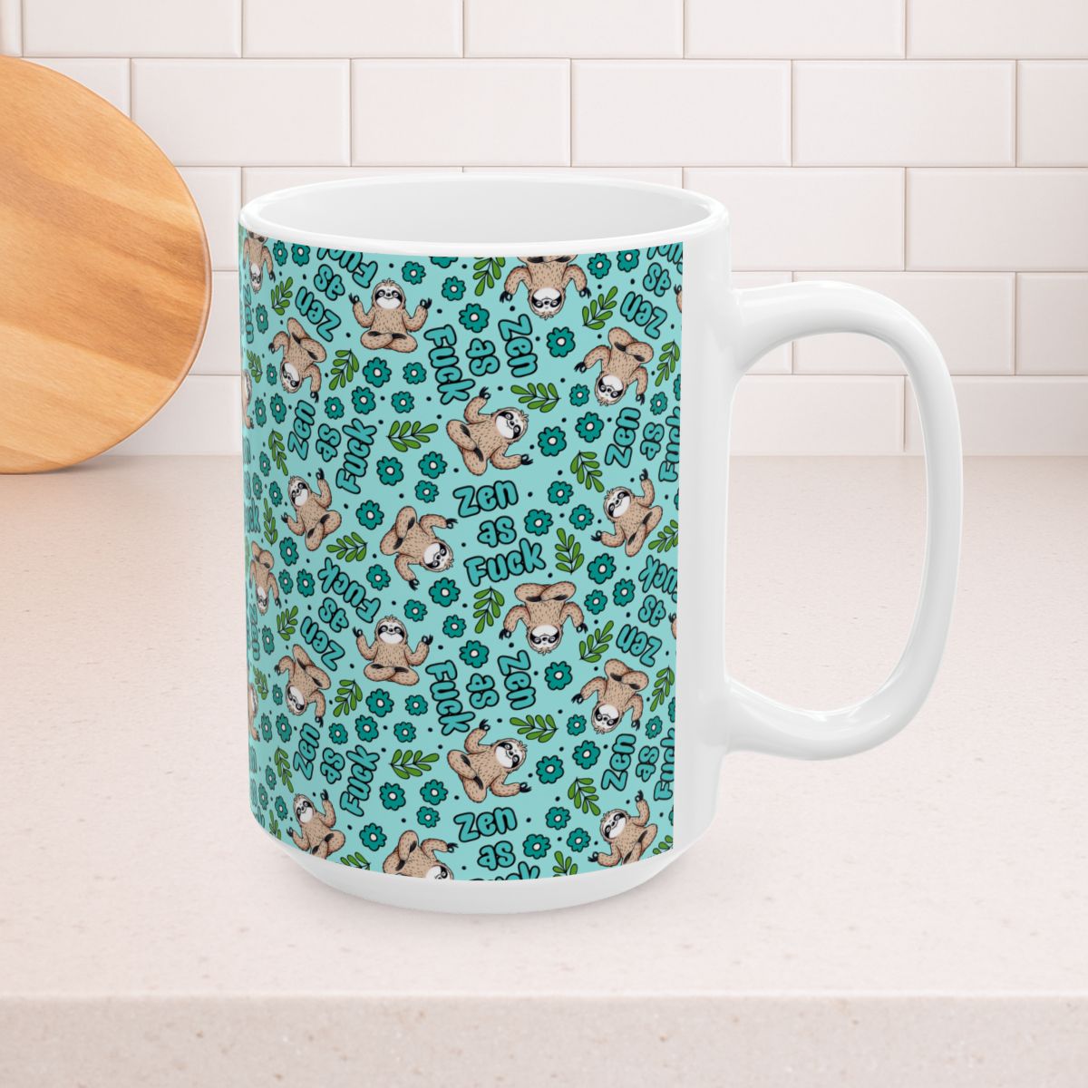Zen as Fuck 15oz Ceramic Mug, Large Coffee Cup, Swear Words, Lazy Sloth