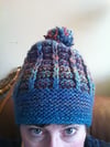 The hat features a garter brim with some short row shaping using MC, then the body of the hat uses a slipped stitch pattern and stripes of MC/CC. Sizes from baby to very large adult, you can make one for all the family, yardages were based on the largest size of hat for the pattern listing. You’d make two baby hats out of one ball of each colour in the same yarn. Info below: