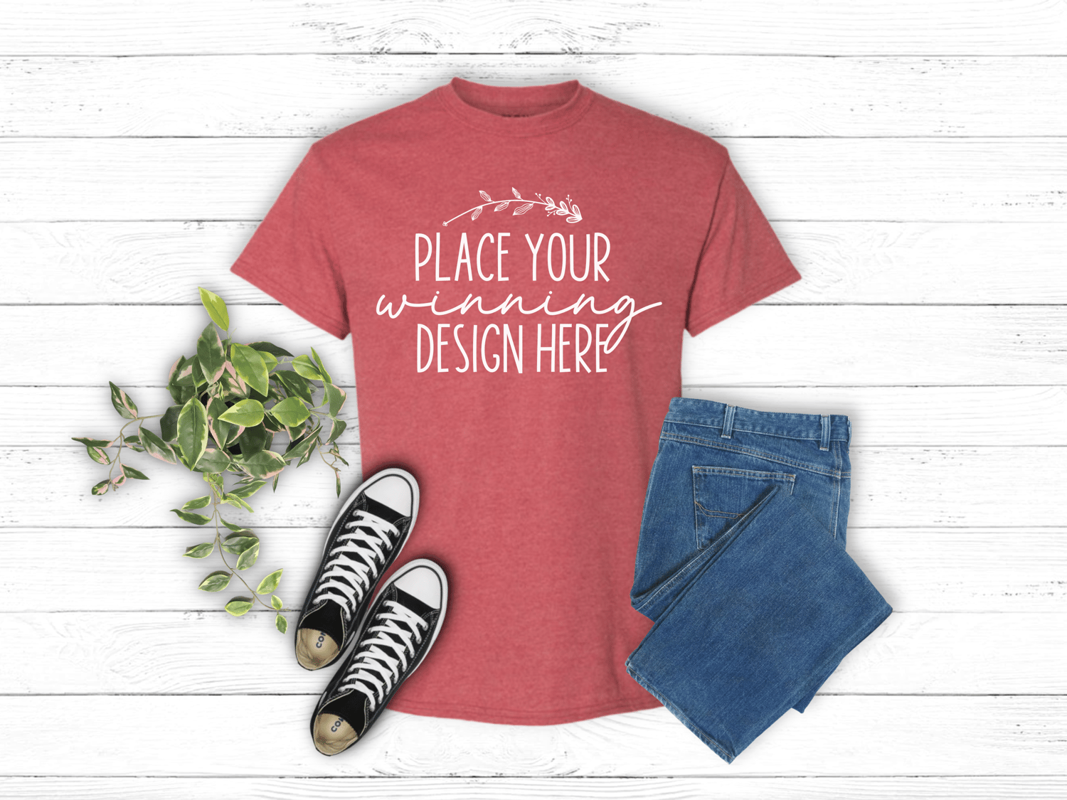 heather sport red shirt mockup Gildan 8000 blue unisex t-shirt Gildan 800 dryblend mock up flat lay G800 red mockups minimalist jpg download