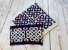 Gorgeous yarn and a gothic style stranded colourwork design make up this bold cowl. Team a bright or multi-coloured yarn with a neutral for an eye-catching accessory.