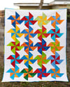 The Phenomenal Pinwheels Quilt Pattern is a pre-cut friendly pattern that has a clever sashing technique to create pinwheels that swoop out of their blocks. The result is a hidden Friendship Star block! This pattern is designed to use 10" squares (layer cakes), as well as a yardage version. The yardage version uses 8-at-a-time half square triangle piecing for quick sewing.