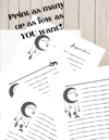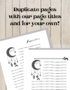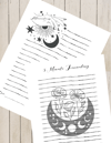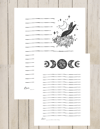 Are you someone who loves to record the important things in life like your dreams, life-changing affirmations, notes for class, potions--er, I mean recipes--passwords, maybe even plan out your days on pages from BuJos but dont like the overly floral, bright and chipper planners and notebooks out there? Well, have you come to the right place! This lovely little light grey number has 14 pages of lined journal sheets, 7 with headings like "Affirmations," "Brain Dump," and "5 Minute Journaling" and 7 matching design pages but with a blank title line for your own writing style, a password keeper and four grid pages with the same theme of esoteric graphics but light enough to build your daily plan, etc. over without distraction, and ohe blank grid page. Print as many of whichever pages you need, as many times as you need! 8.5" x 11 pages including cover and "This Book Belongs To" page. Ever mindful of the price of toner and ink these days, the entire set is in differing shades of grey (not like that!) so you wont use up all that expensive color toner!