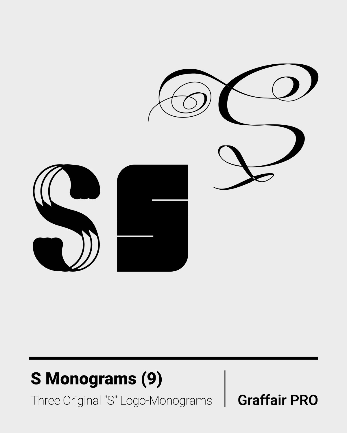 S Monograms (9): The 9th set of three original "S" logo monograms, included in the "1050 SVG Monograms" super bundle, which also features an Index catalog.
