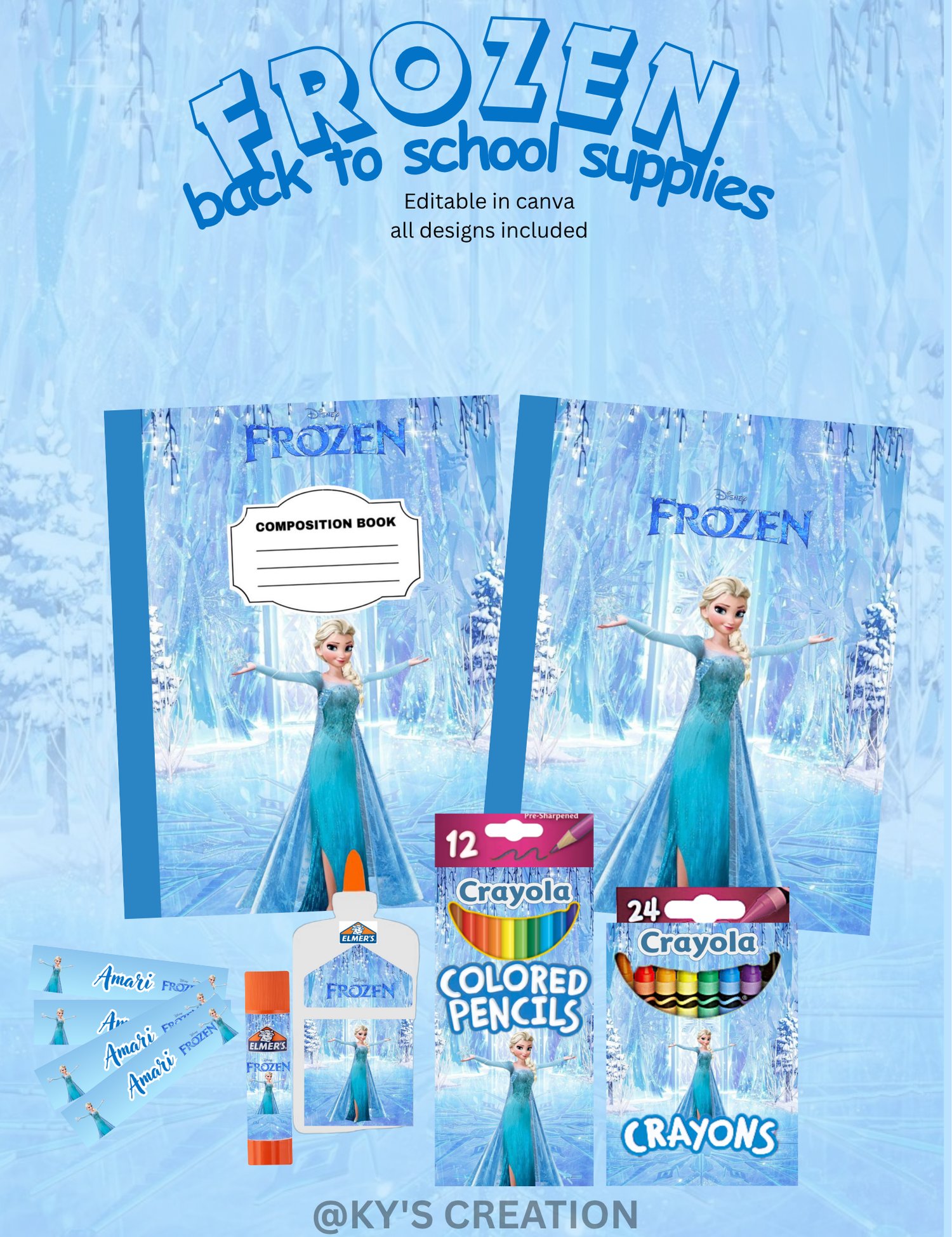 Elsa School Supplies Template Set | Pencil Wraps, Glue Stick Label & Composition Book Cover | Digital Download Only