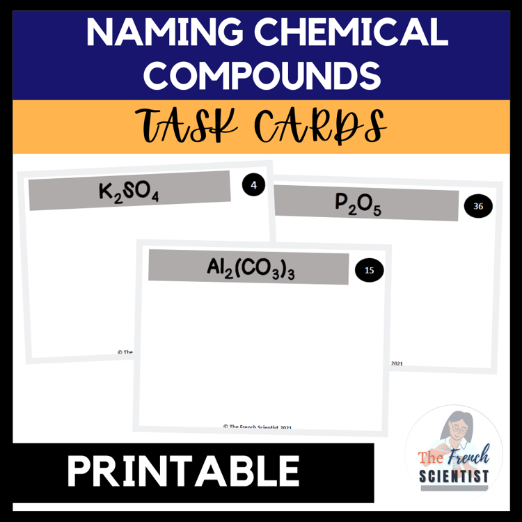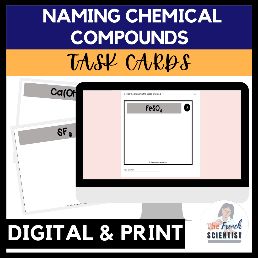Looking for a great activity to teach the topic of Naming Chemical Compounds in an engaging way? This product contains a set of 40 task cards which can be used as a task-based or station-based activity, adding in the fun to your lesson! It is also a great resource that can be used as a part of the review, pre-assessment, post-assessment, extra practice, or end-of-year test prep.