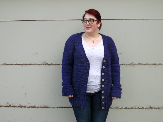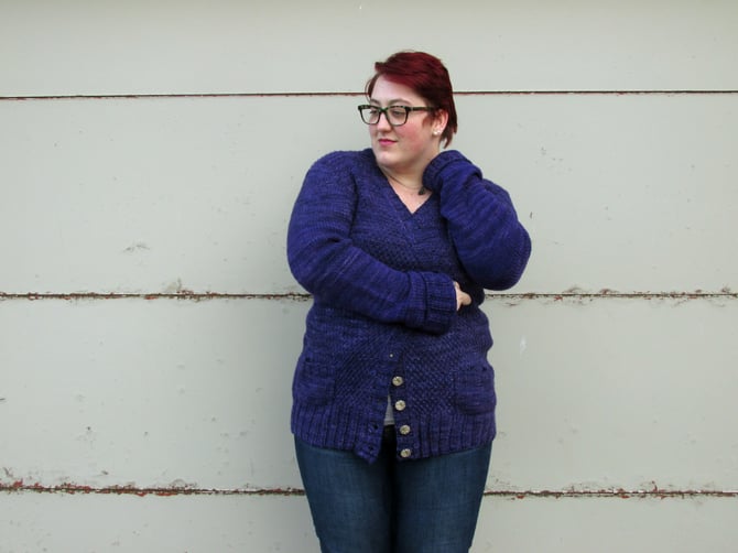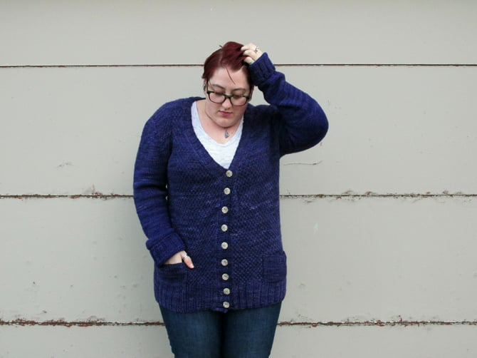 I love a cozy grandpa sweater, and Ifan is exactly that. Intended to be worn with 2-6in/5-15cm of positive ease, Ifan has extra long sleeves and cozy patch pockets. The textured moss stitch body gives way to deep ribbing and tailored stockinette set-in sleeves.