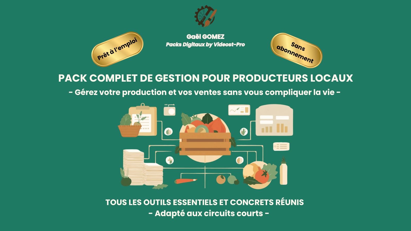 Le Pack complet de gestion pour Producteurs locaux a été pensé pour celles et ceux qui lancent une activité en circuits courts et veulent éviter les erreurs classiques des 24 premiers mois.