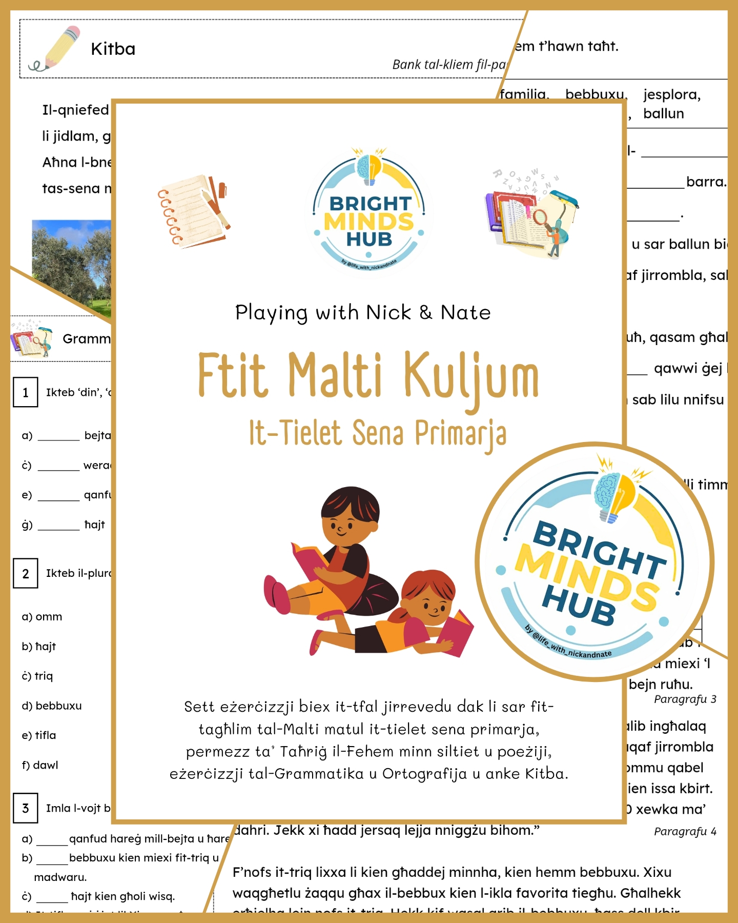 Kull kapitlu jinkludi silta jew poeżija u eżerċizzji ta’ komprensjoni, diversi eżerċizzji tal-grammatika Maltija - fosthom l-artiklu, l-pronomi, pronomi dimostrattivi, punteġġjatura, nomi, verbi fil-passat u fil-preżent, il-kmand, aġġettivi, maskil u femminil, singular u plural, il-partiċelli, kliem il-għadd u oħrajn.