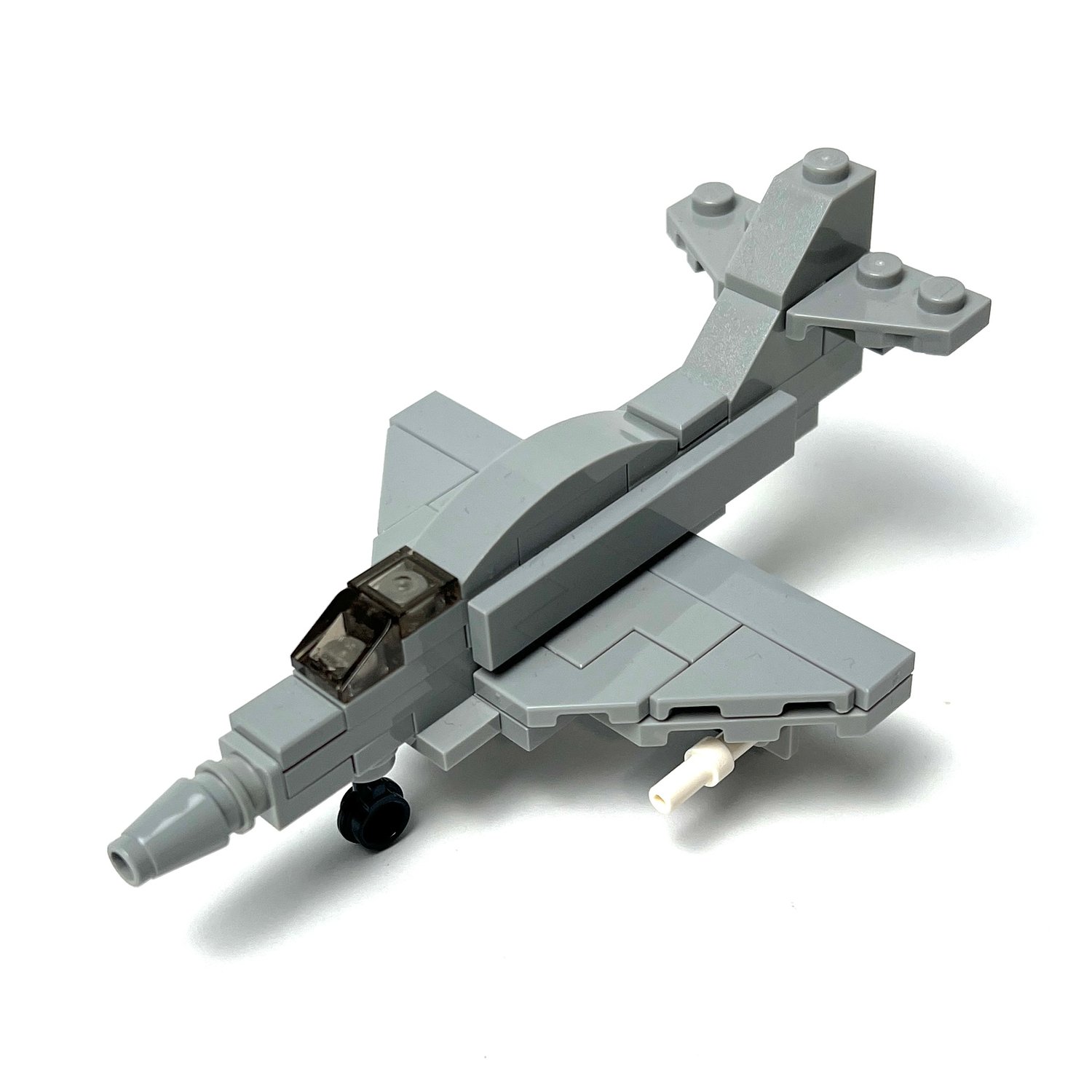 Here's our version of this aircraft in 1:120 scale, and was made to be compatible with nano figures, or nano soldiers from Brickmini. It comes with two sidewinder missiles attached to the underside of the wings, and you can remove the wheels for flight mode.