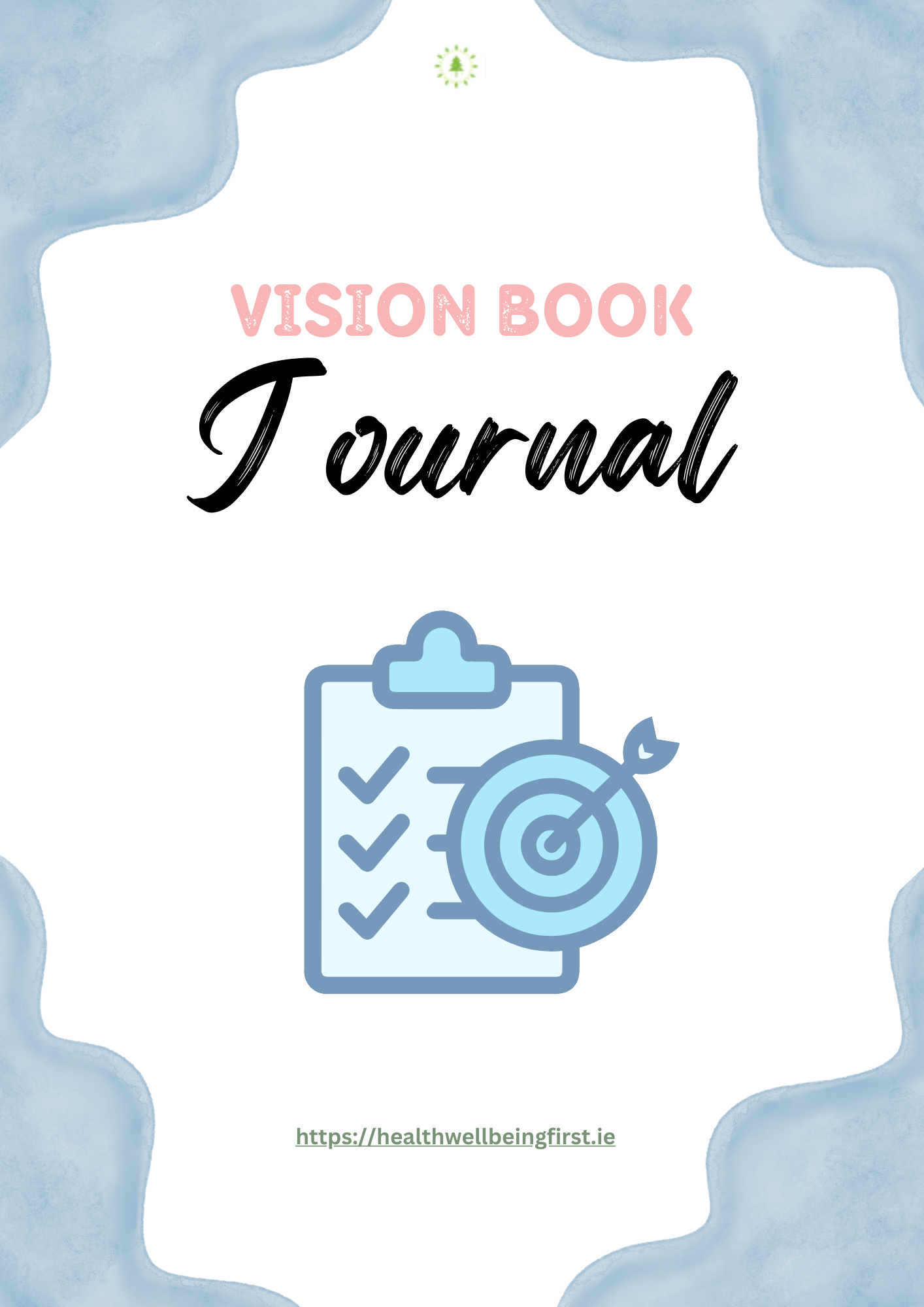 Vision book journal.- 33 pages. Inspiration quotes, affirmations, mind map, tree of thoughts, expressing gratitude, kindness tracker, thankful for, my best self, mood tracker, vision board, my vision board, monthly vision, my average day, life wheel, yoga log, meditation tracker, visualization, bucket list, letter to future me, letter to the universe, letting go, reflective thoughts, journaling pages, my new reality.