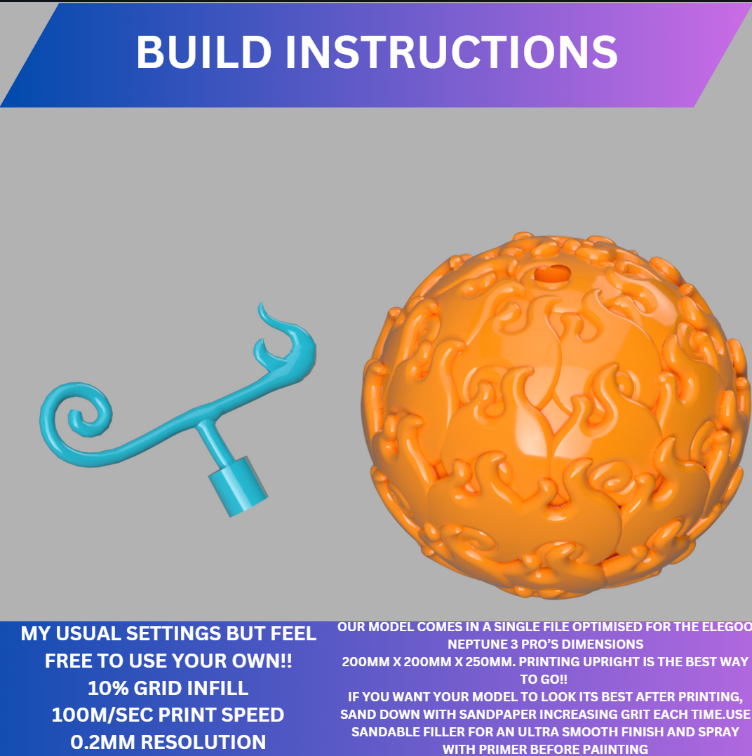 Harness the power of flames with this expertly designed 3D model of the Mera-Mera no mi devil fruit, inspired by the legendary One Piece series. This piece is perfect for fans of Ace the fire-wielding Devil Fruit user that left an unforgettable impact on the world of anime. Created with 3D printing in mind, it’s easy to print and paint, allowing full customization to match the anime’s unique colour palette.