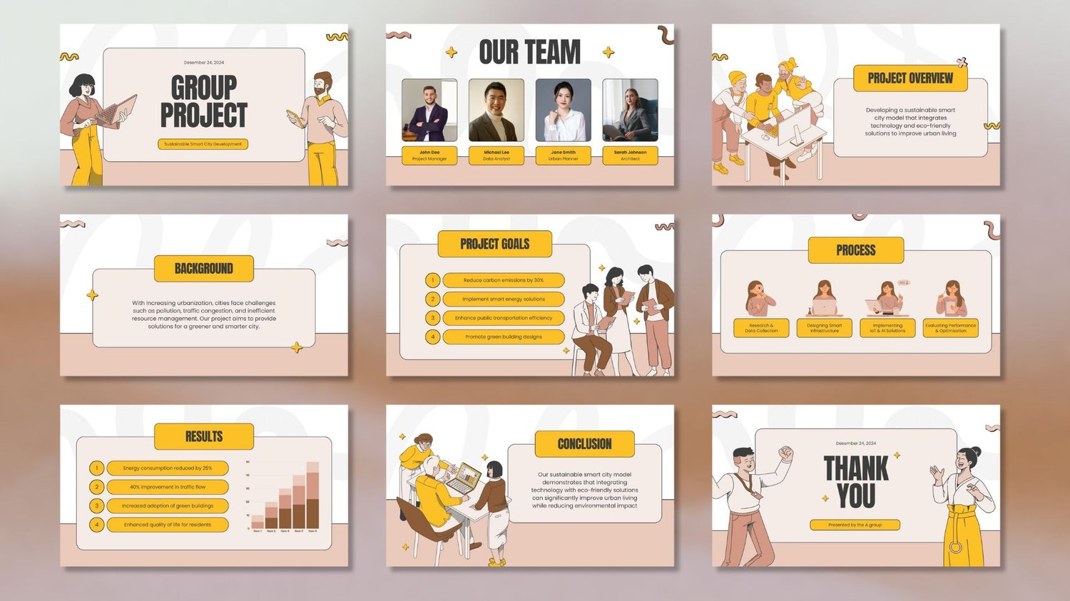 Our PowerPoint templates for group project presentations are designed to help you create visually stunning and impactful presentations with ease. These templates are tailored specifically for group projects, ensuring that your content is organized, engaging, and easy to follow. Our templates will save you time and elevate the quality of your presentation.