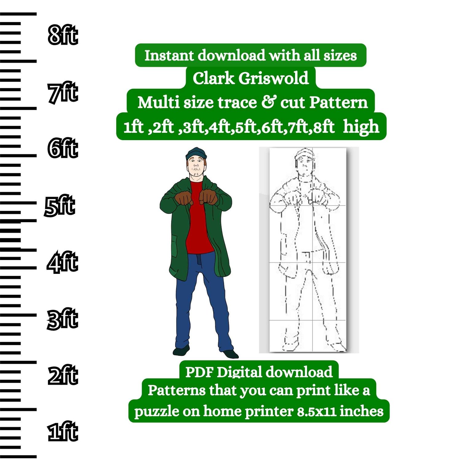 Christmas Vacation Clark Griswold pattern ,trace and cut, 1ft 2ft 3ft 4ft, 5ft, 6ft 7ft 8ft, silhouette Template stencil pattern, Christmas village scene, print trace & cut pattern, Xmas yard art, trace and create Décor, D