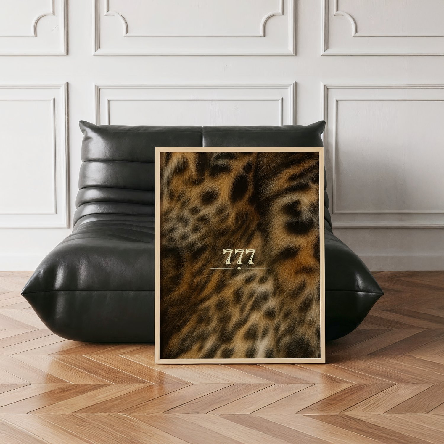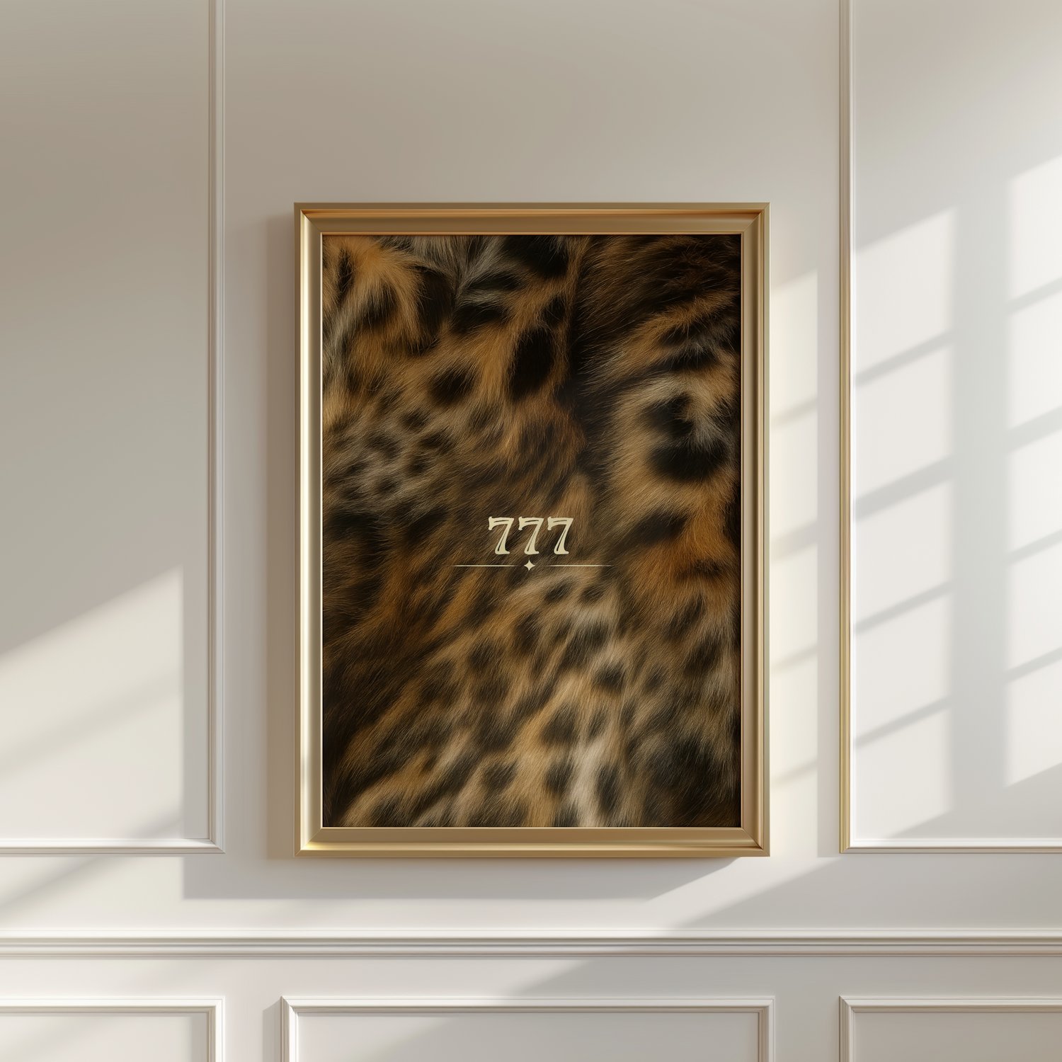 777 Leopard Wall Art Print – Lucky Number Manifestation Poster – Luxury Animal Print Decor – Y2K Stockholm Style Trendy Gallery Wall Printable Art