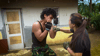 She convinces them that they dont need a weapon, she can challenge them in hand to hand combat