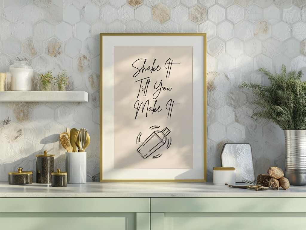 “Shake it ‘til you make it” — a sassy, shaker-themed design that’s perfect for a bar cart or entertaining space..