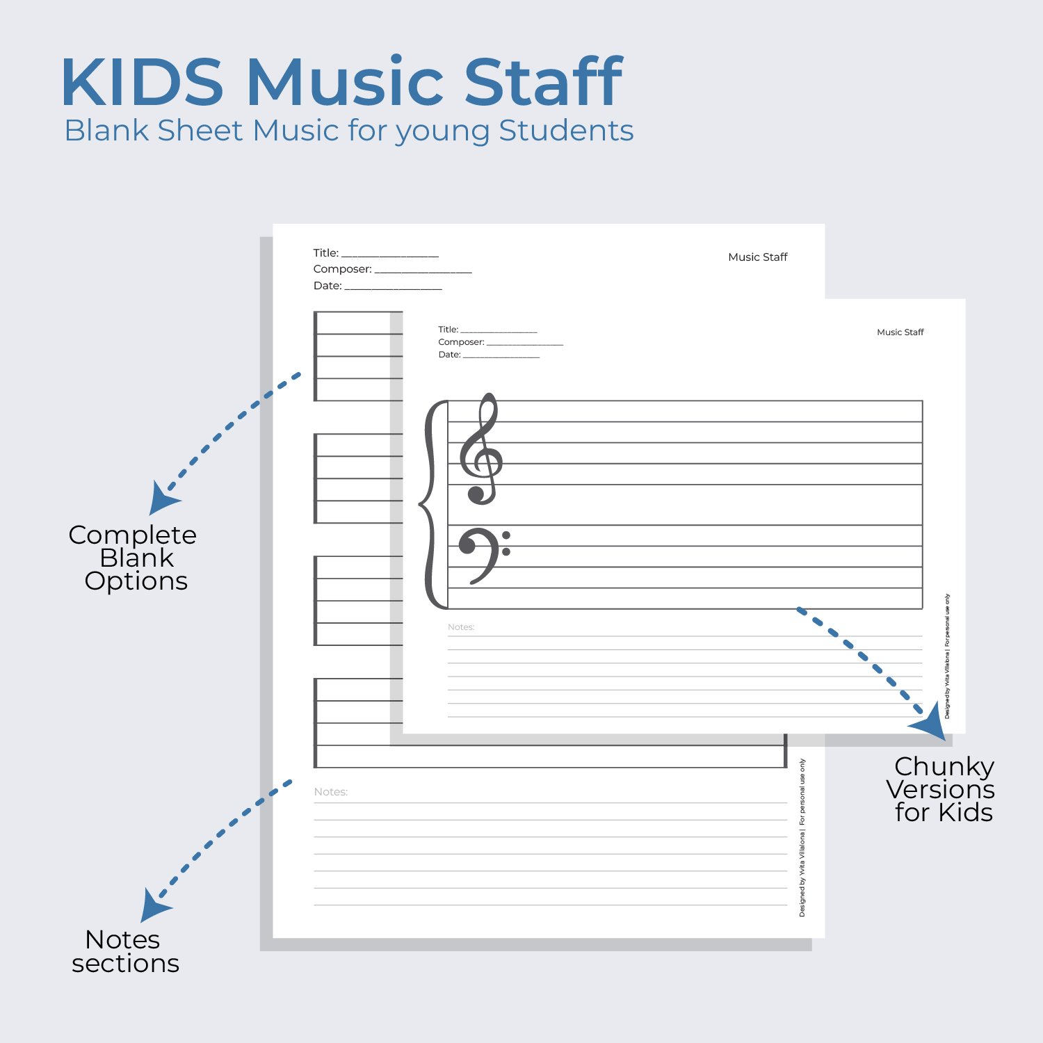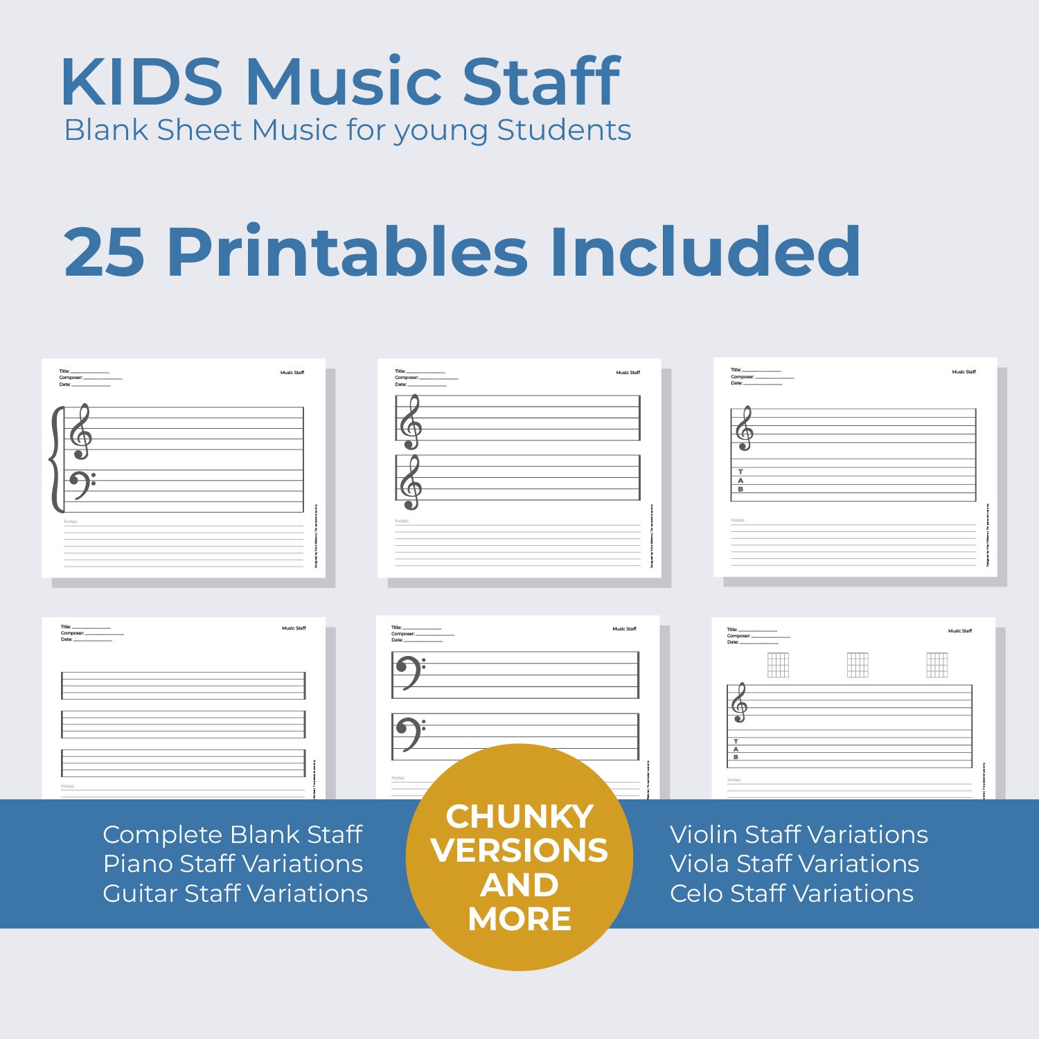 This bundle includes a variety of kid-friendly staff paper layouts:
