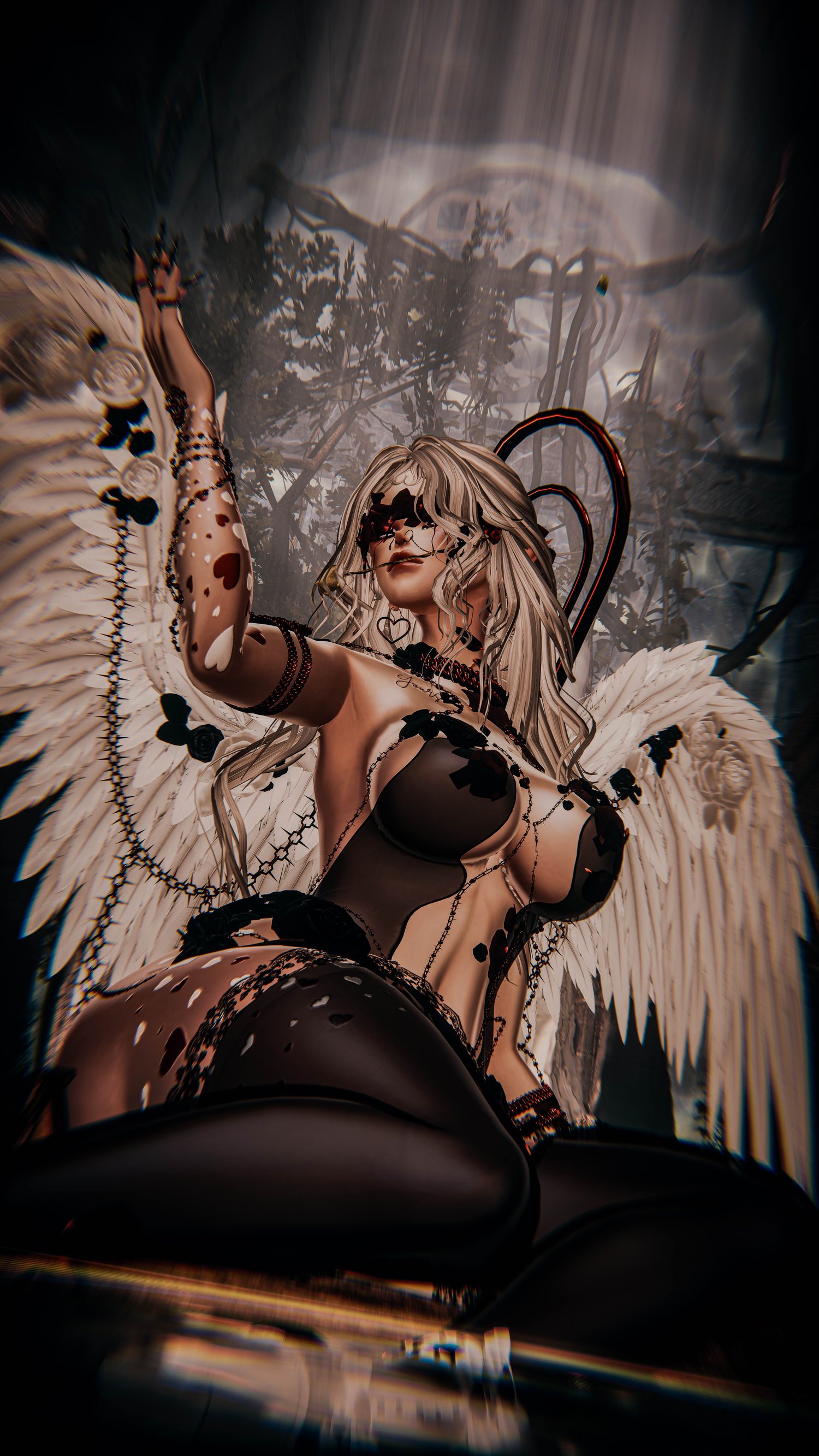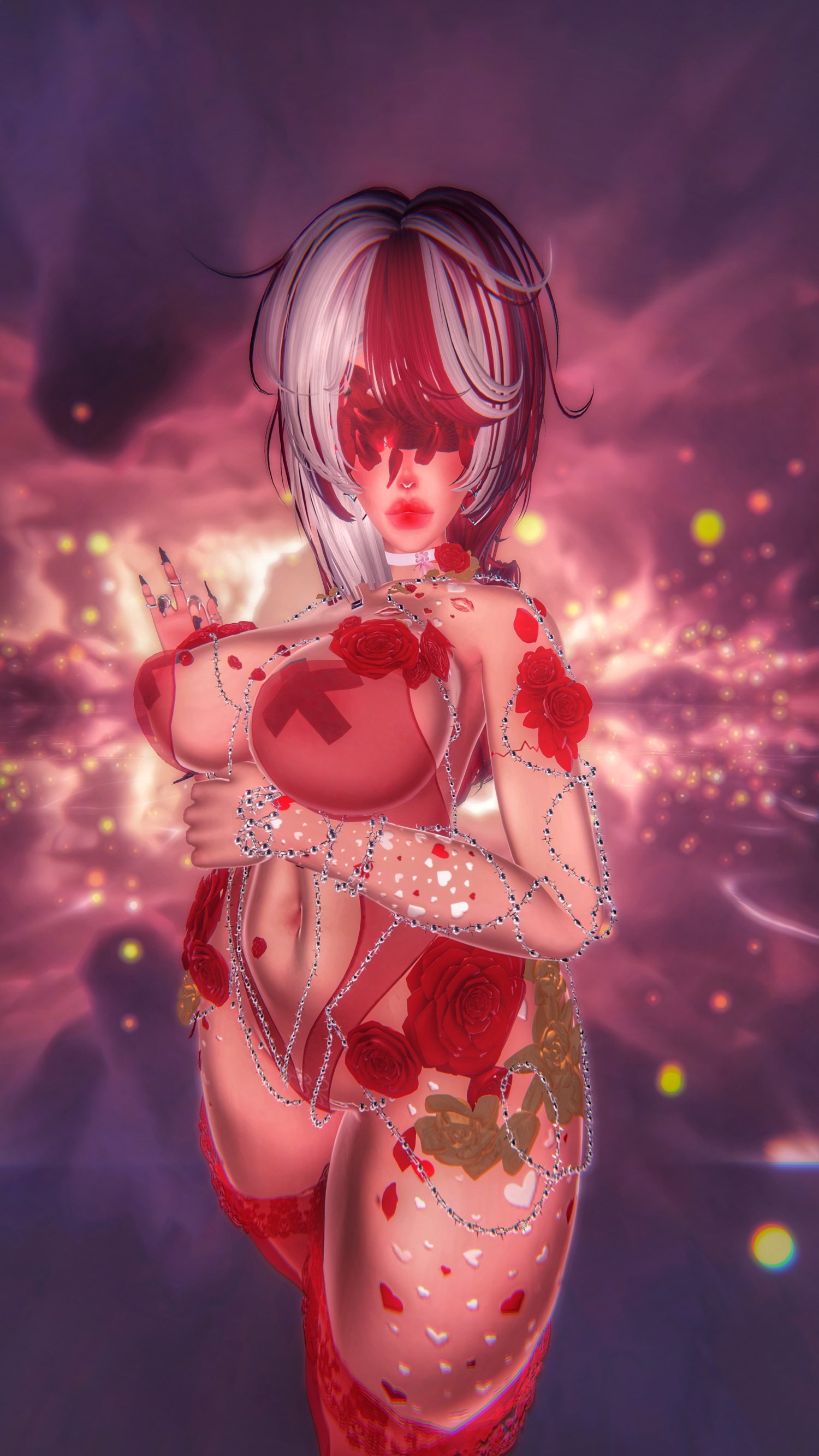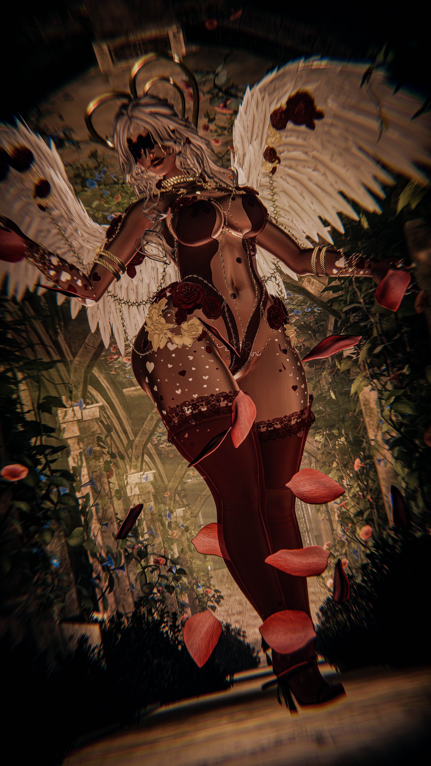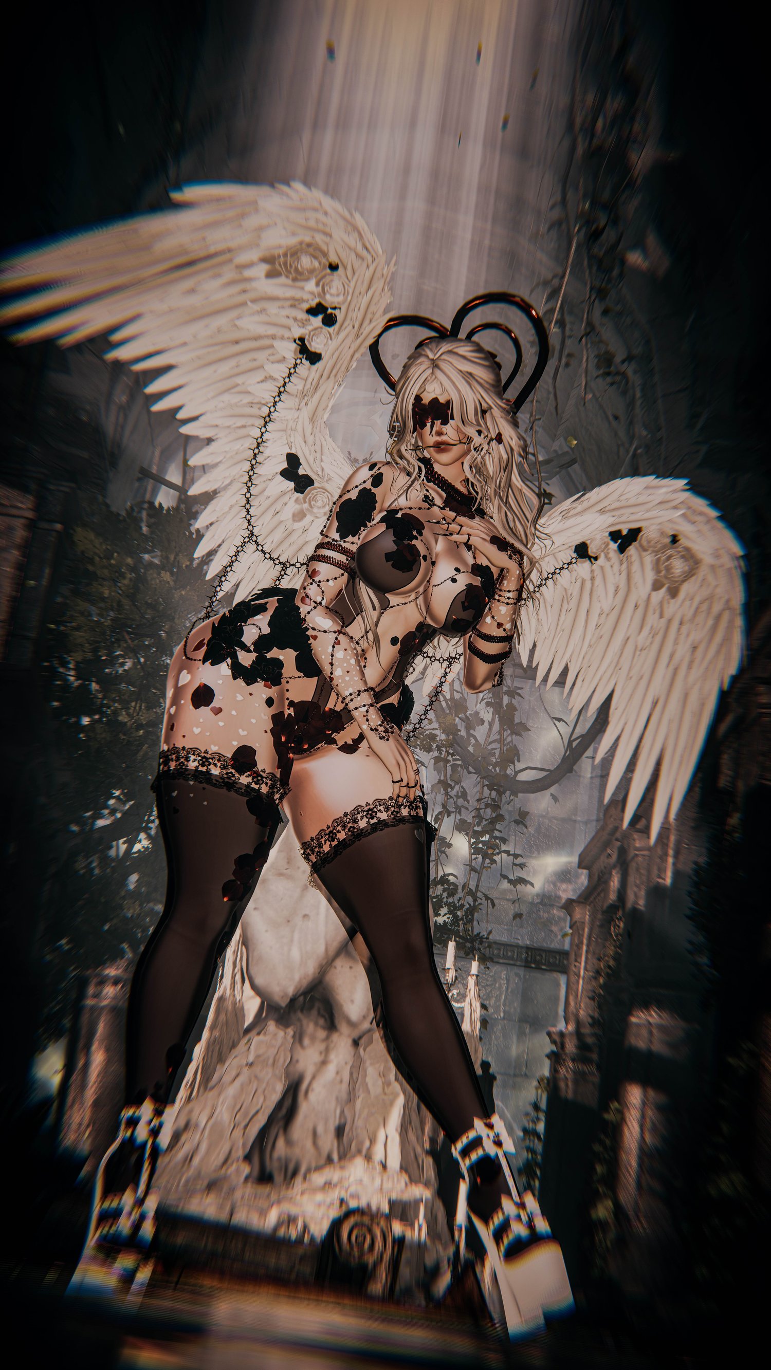 Wings | Rose Bodysuit | Thigh Highs | Lace Cloak | Ears & Tail | Rose Glass Heels