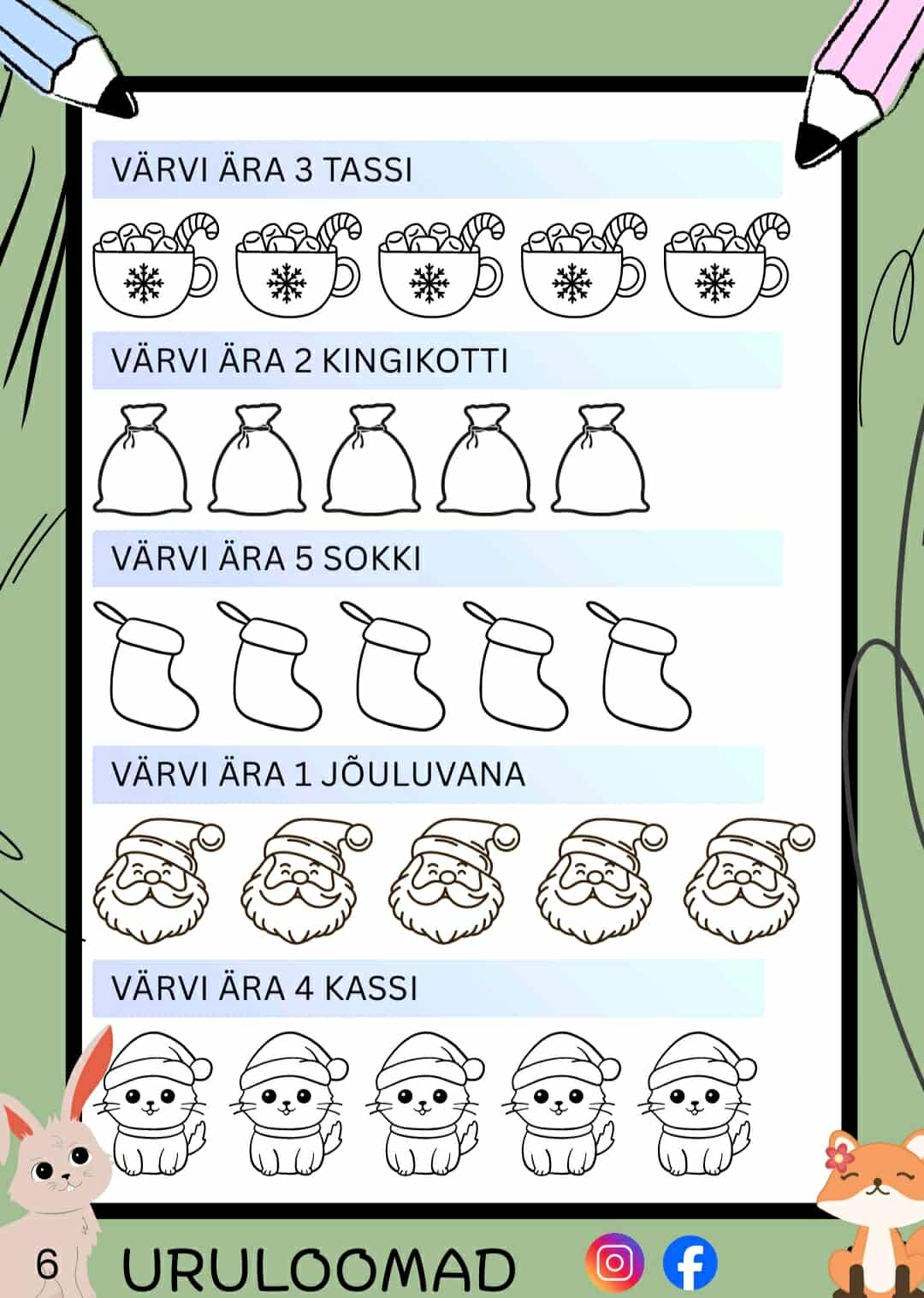 - Advendikalendrina - iga päev üks tööleht kuni jõuludeni