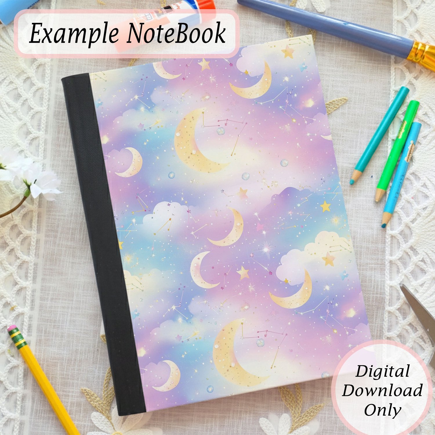 Pastel Moon & Stars Sky Composition Cover