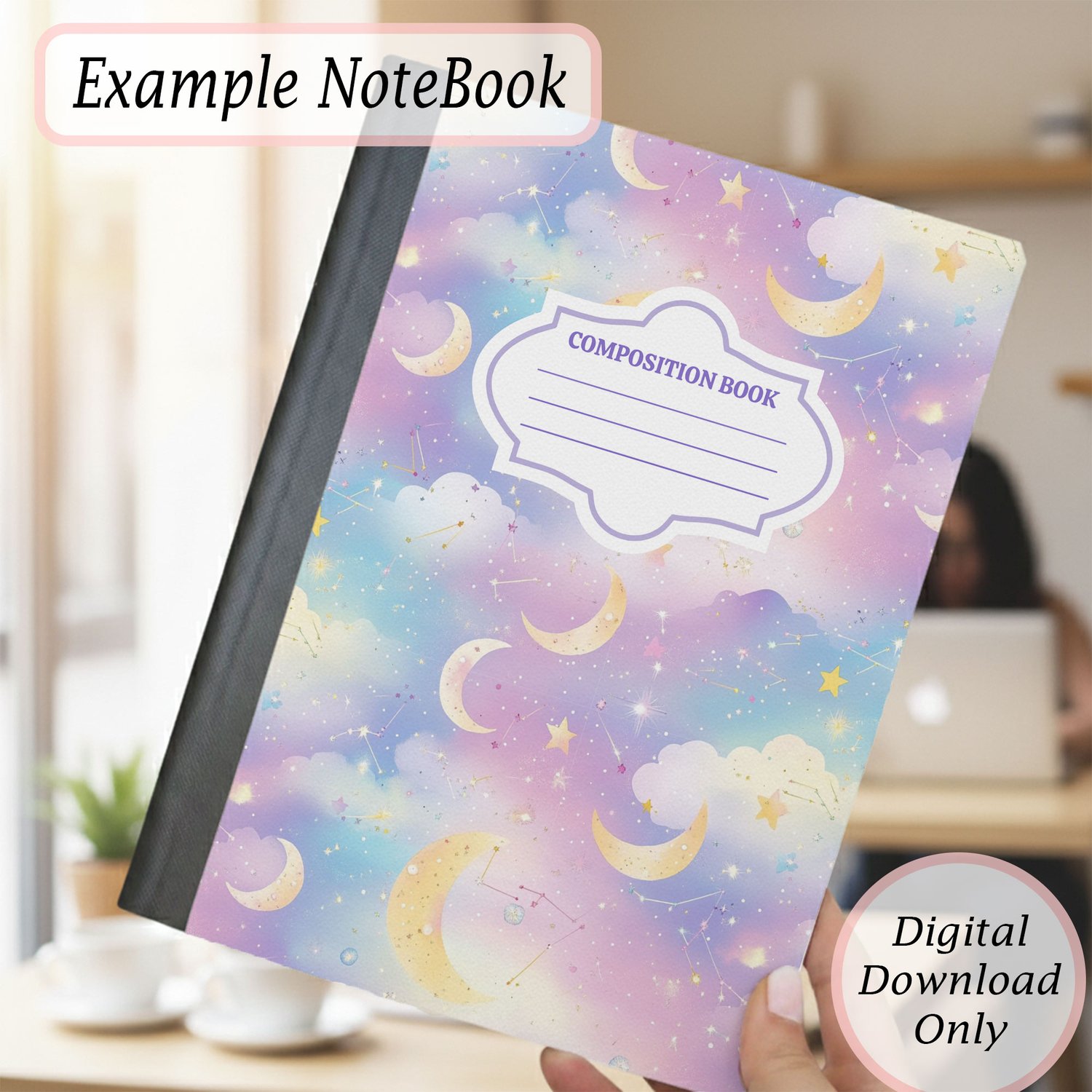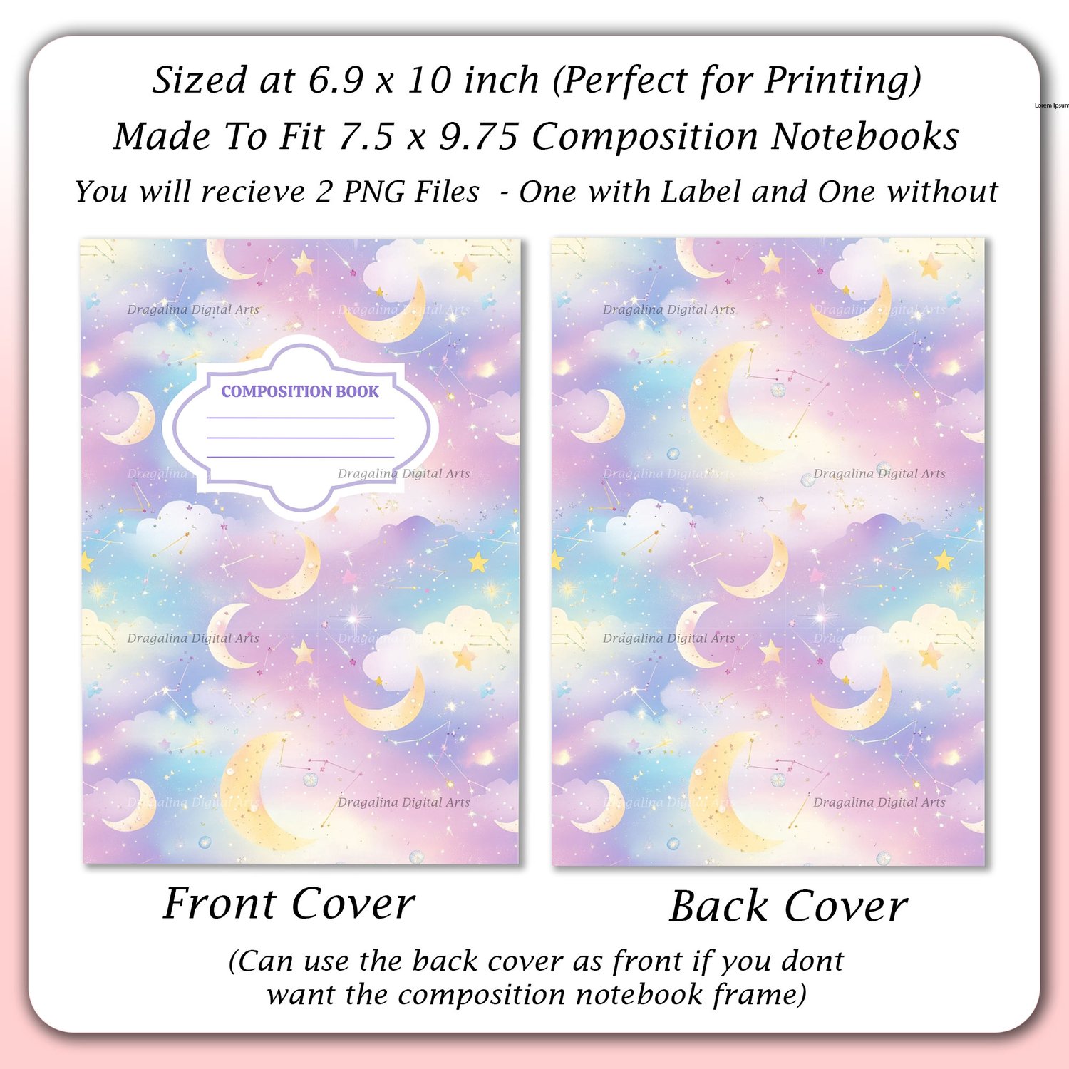 Transform your notebook into something unique and stylish with this printable composition notebook cover! Designed at 6.9 x 10 inches to fit standard 7.5 x 9.75 composition books, this high-quality digital download includes two PNG files—one with a label and one without—so you can personalize your notebook exactly the way you like. Perfect for school supplies, journaling, planners, DIY crafts, and personalized gifts.