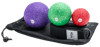 3 myofascial release balls and a yoga strap in mesh draw-string bag