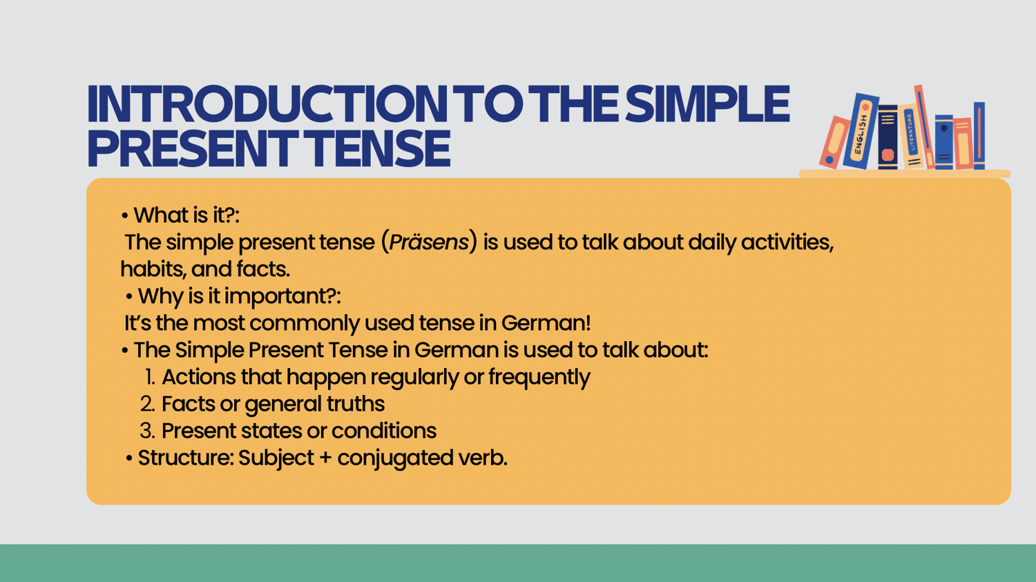 Whether you’re revising key grammar points or learning them for the first time, this presentation is designed to make understanding the present tense in German easy and accessible. Perfect for self-study or classroom use, it’s an ideal resource for anyone looking to strengthen their foundation in German.