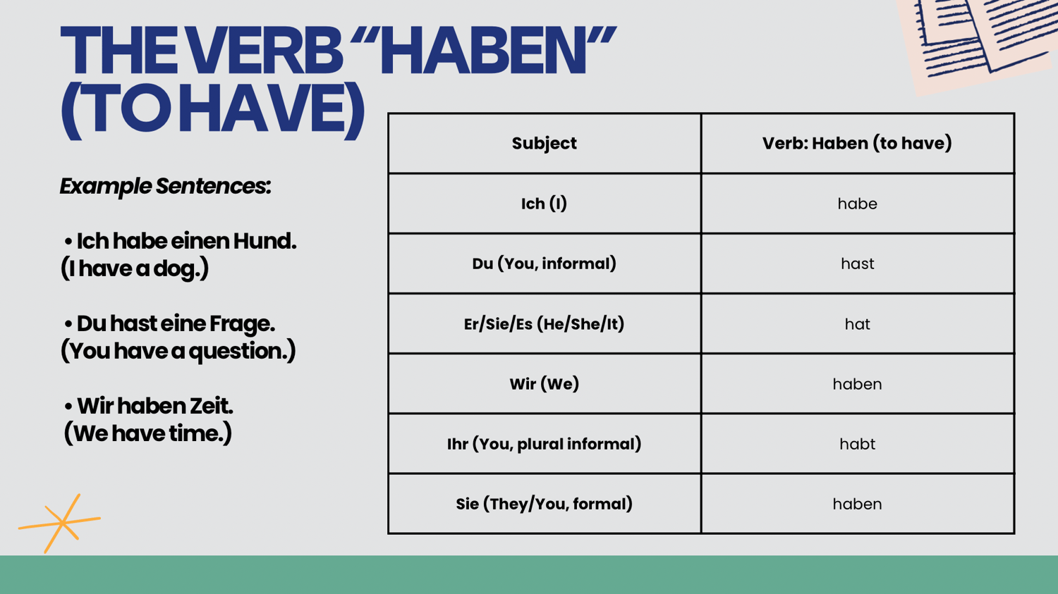 German A1 Simple Present Tense: Regular Verbs, Sein, Haben