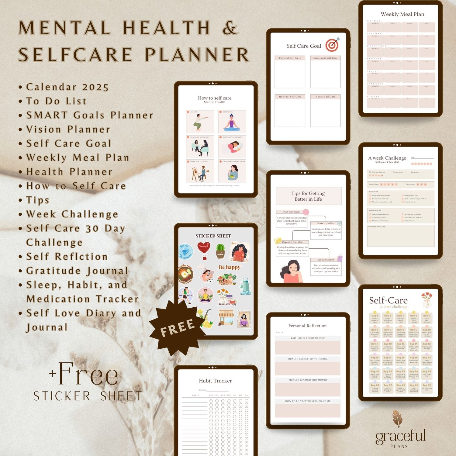 Mental Health & Selfcare Planner - Digital Download (PDF)