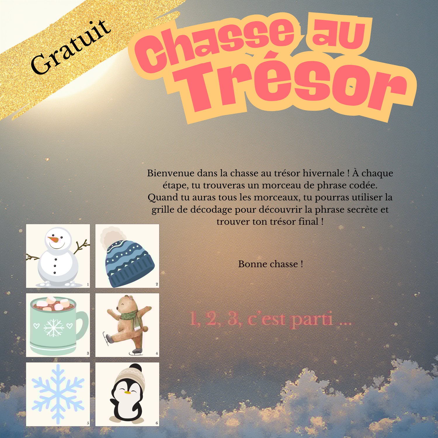 Tu imprimes, tu caches les vignettes… et ton enfant part à la recherche de son trésor comme un vrai détective.