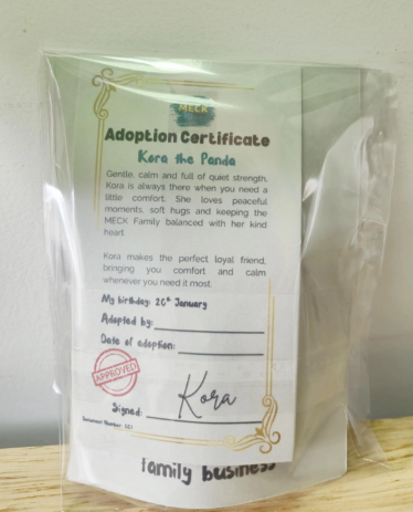 Every MECK Family Keyring now comes with its own Adoption Certificate, officially welcoming your new friend into your life. It’s a meaningful touch that turns a simple keyring into a collectible keepsake.