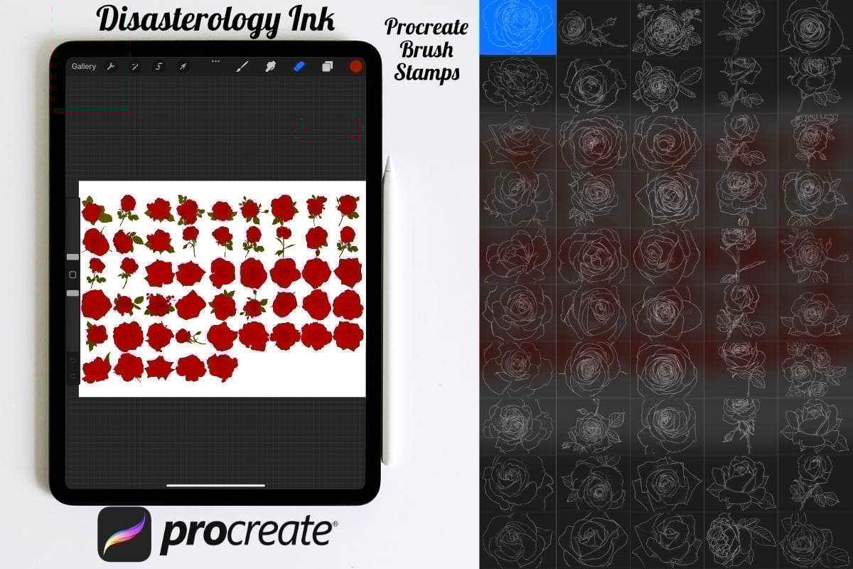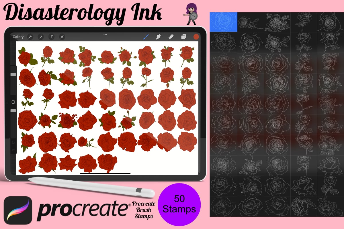 Procreate stamps save time when drawing, saving the effort of having to recreate the same thing for multiple designs and projects, save time on your design by purchasing these rose outline brush stamps so you can utilise that time on creating more beautiful art.