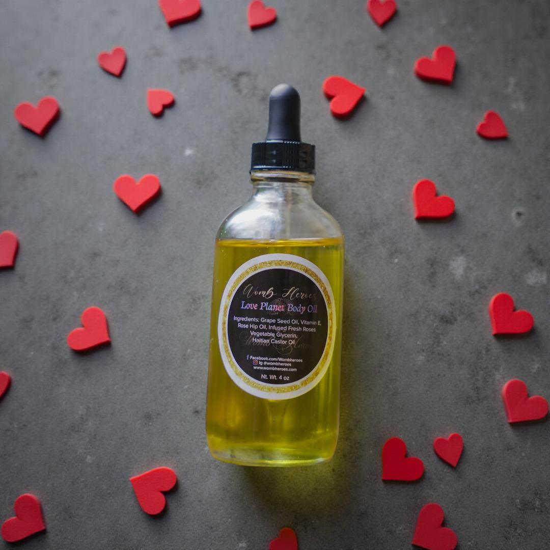 Love Planet body/skin oil is excellent for ANYONE THAT WANTS A NATUAL GLOW, mens beard, laboring women, stretch marks, cesarean births, womb massages, lip moisturizer, hair moisturizer, and massage therapy. It has no chemicals or toxic ingredients, non-GMO, gluten-free, cruelty-free, and vegan. These products are customized to everyone’s needs.