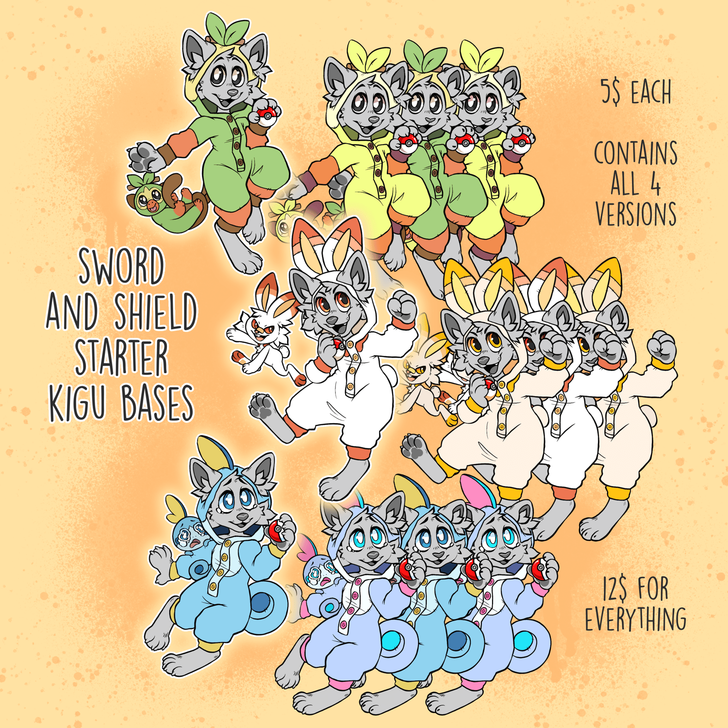 You’ll get a PSD file for each starter that includes both a canine and feline version of the lineart with both shiny and regular, as well as a transparent version of each lineart if you use an application that doesn’t open PSDs. It is missing some effects though due to this.