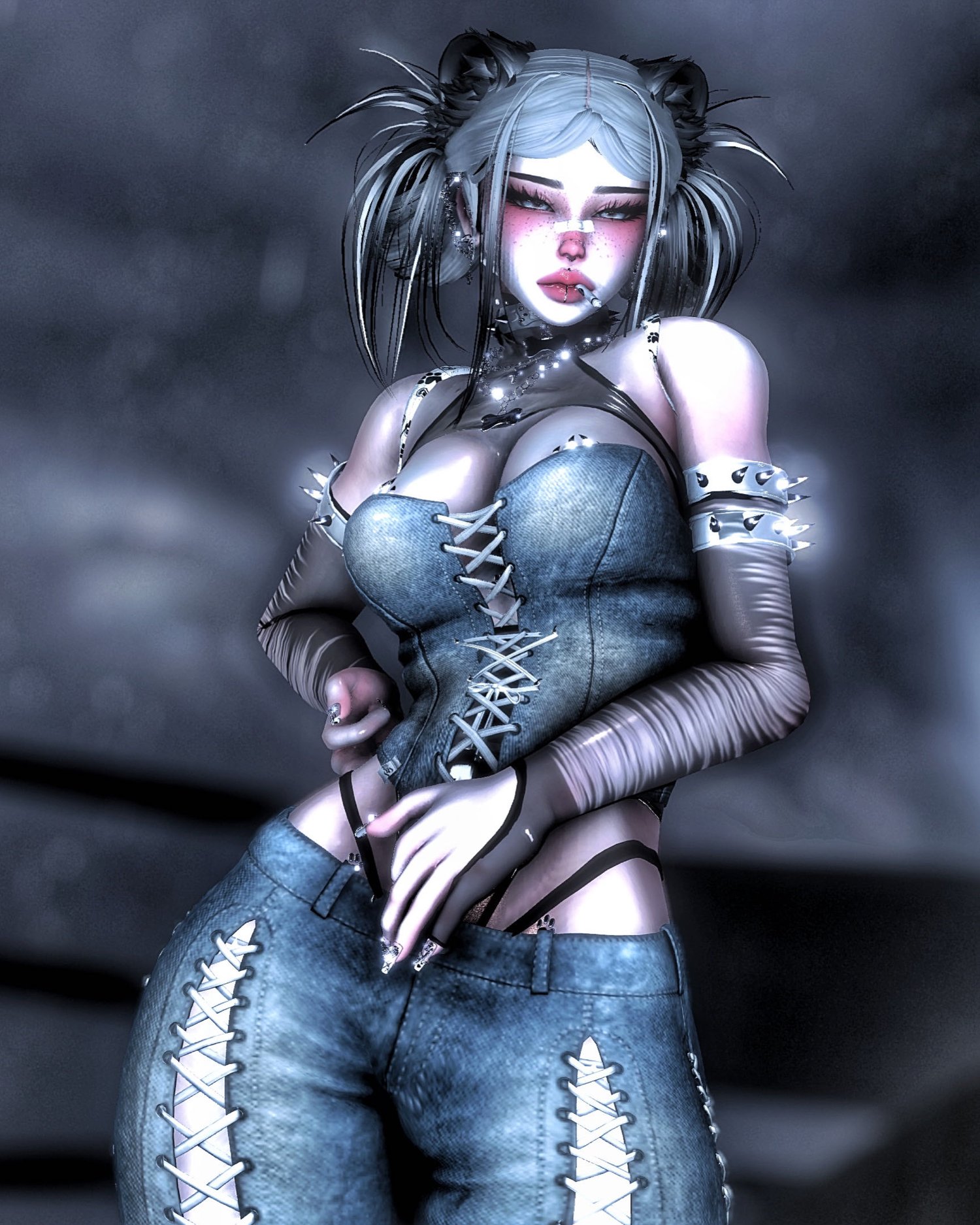 ♡ Tops: denim top (suki), fishnet bodysuit (vinuzhka), school bra, fishnet top (vinuzhka), tie corset (ambz), circlet top (Yume3D), skelly bodysuit (milkymutt), lingerie bra (ambz), comfy bra (weeeby),