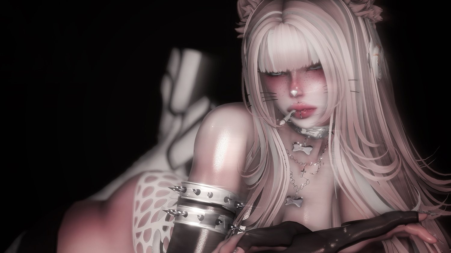 ♡ Accessories: Kitty glasses (teacakez), earring acc (heavensinz), earring acc2 (suki), bone collar, bone necklace (pillowart), tie, leg strap (vinuzhka), paw pasties, paw coochie pastie (Xero3D), fishnet mask (Xero3D), puppy harness/leash (daddysenpai), fishnet stockings (Ambz), cat nose/whiskers (Lena), bone, headphones, legwarmers, cone, gag, bandaids, shock collar, forehead sticker, straps, crayon, sammich, butt plug tail (milkymutt), fishnet sleeves (ambz), toe beans (kemma), muzzle (dacozygremlin),