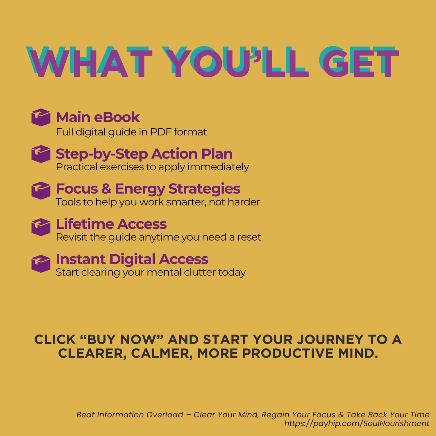 Every day you stay in overload mode is another day of lost focus, wasted time, and missed opportunities. Beat Information Overload gives you the tools to take back control — starting today.