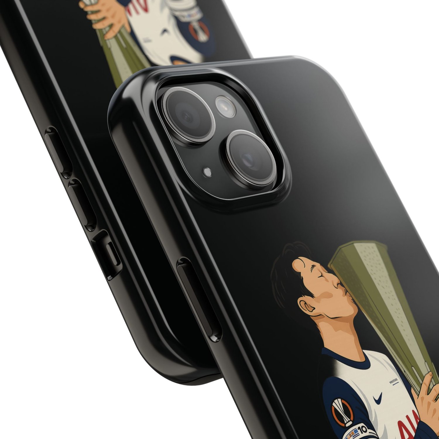 Celebrate the ultimate football dream with this epic Son Heung-min phone case! Featuring a powerful 2D illustration of Sonny proudly lifting the Europa League trophy, this design captures a moment of pure glory. Dressed in the iconic Tottenham Hotspur kit, with confetti falling and the stadium lights glowing in the background, this case is perfect for fans who believe in greatness. Durable, stylish, and full of passion—carry your football pride everywhere you go