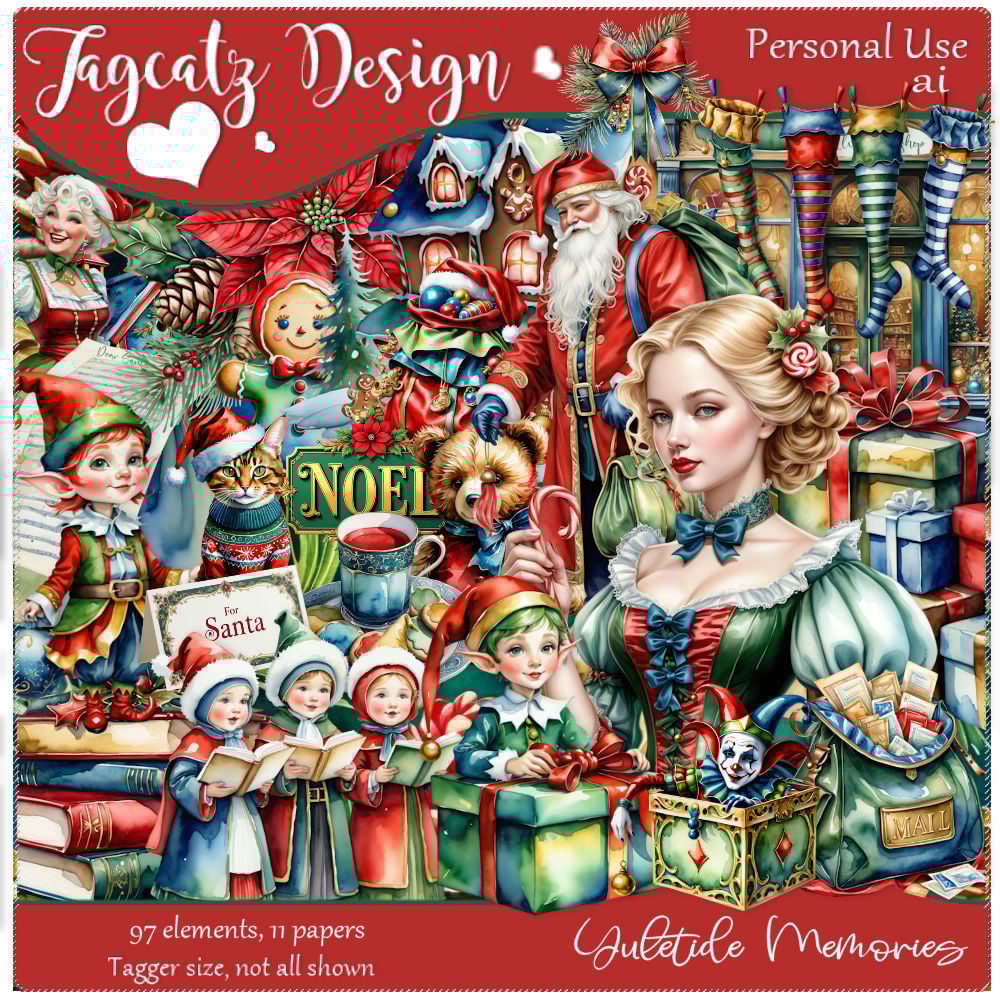 Christmas memories with a touch of nostalgia. 97 elements and 11 matching papers. AI product. Tagger size. Not all shown. Personal use only.