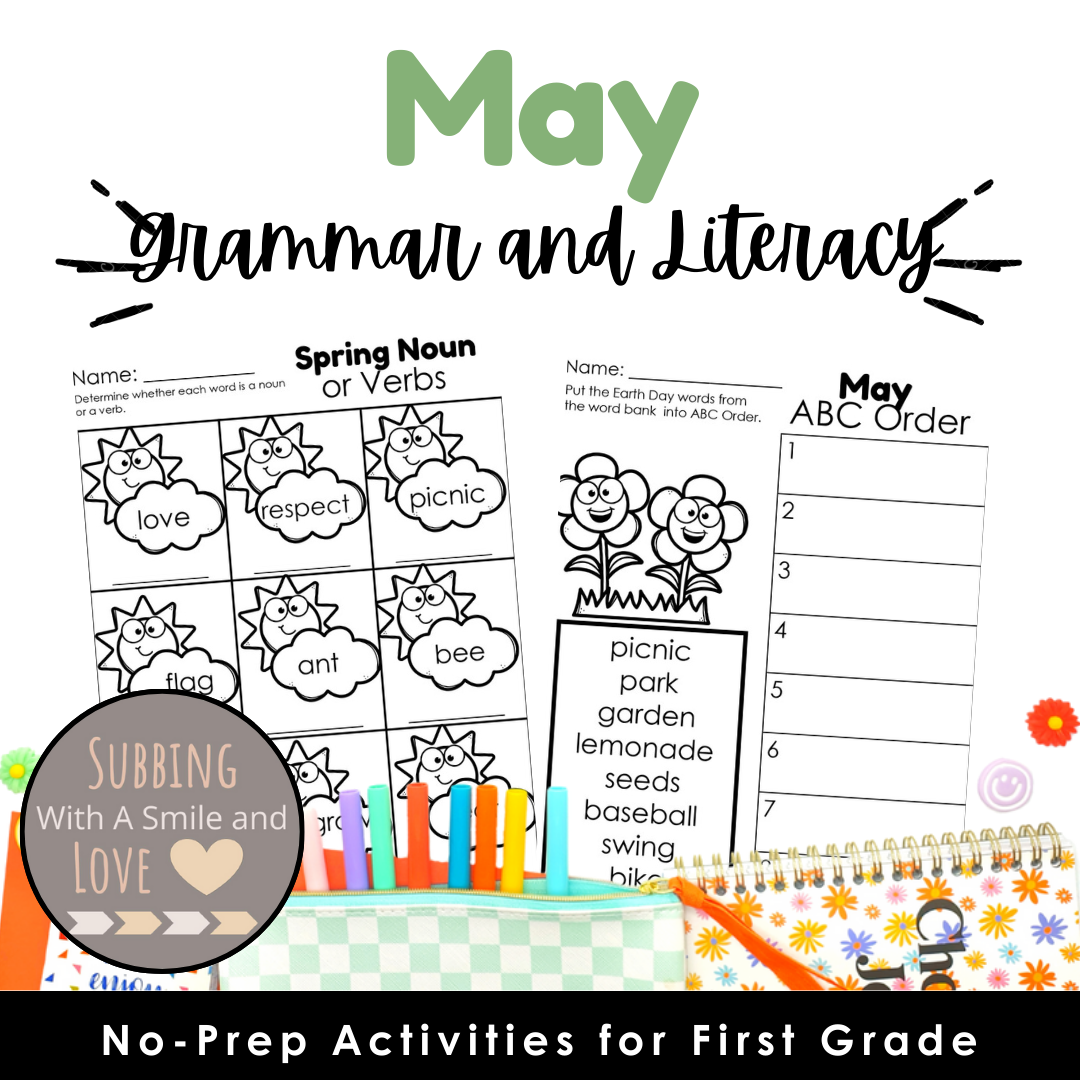 May Grammar and Literacy| ELA No-Prep Activities and Worksheets for First Grade