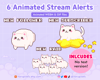 6 Animated White Cat Stream Alerts Pack