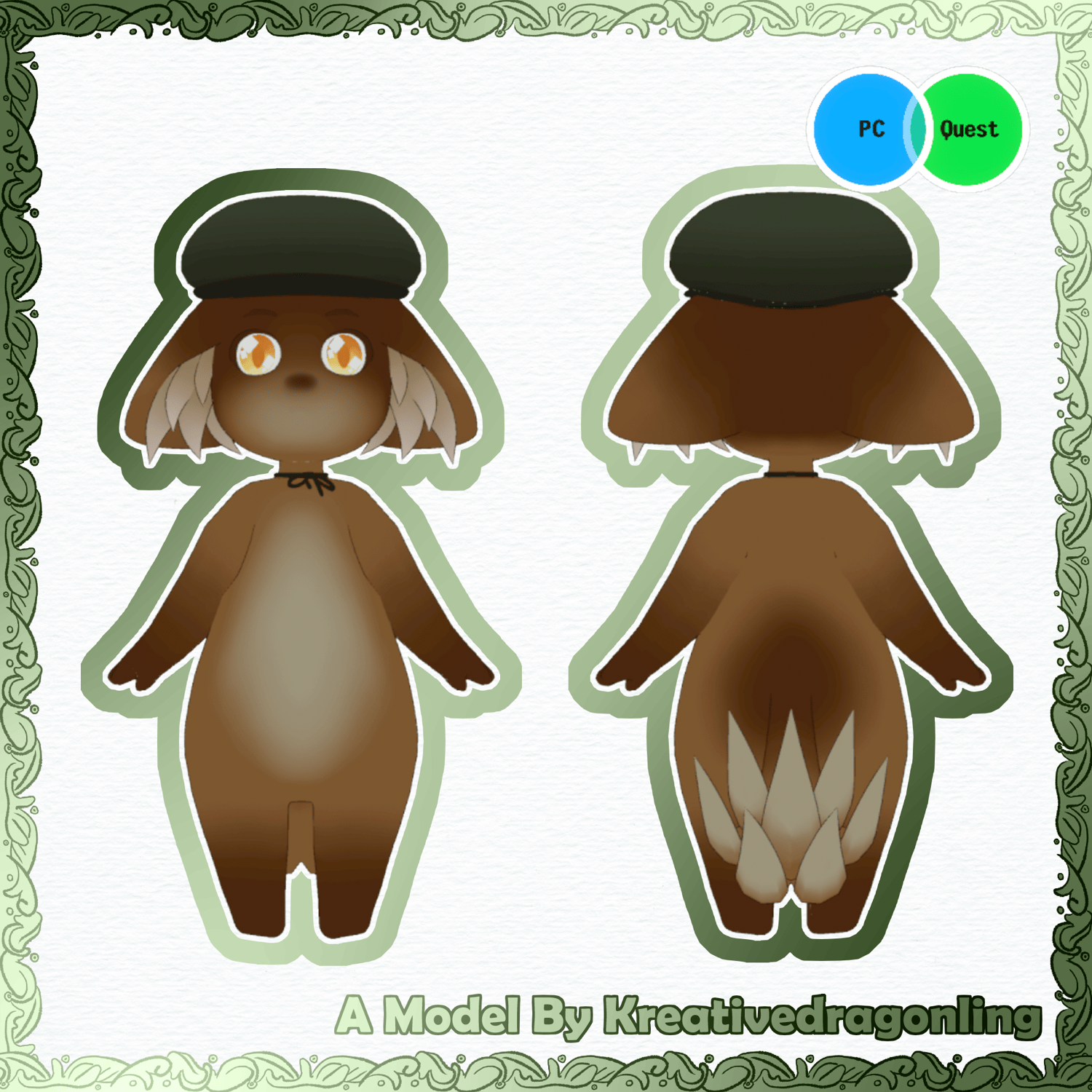 Quest Compatible, VRChat Avatar, 3D Model, From Scratch, Original Design, Easy to Customize, Beginner Friendly, Upload Ready, Object Toggles, Chibi, Anthro, Brown, Green, Earth Colors